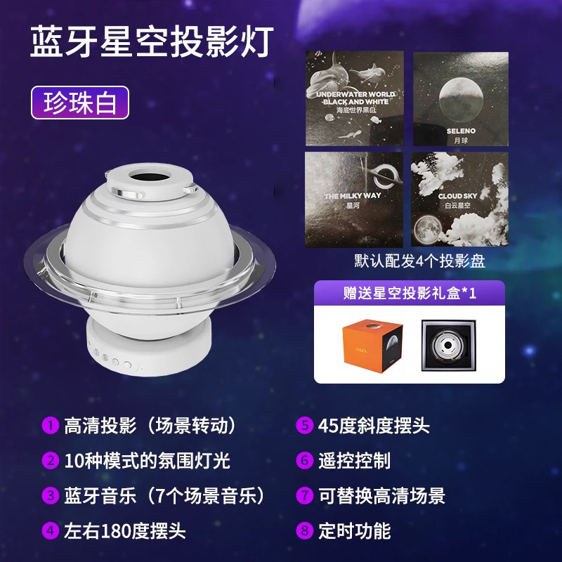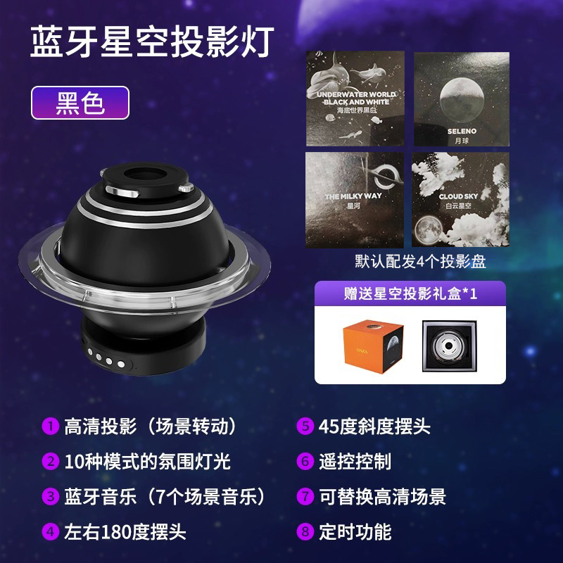 飞碟星空投影灯蓝牙音乐灯卧室氛围灯情侣礼物浪漫创意礼品灯夜灯
