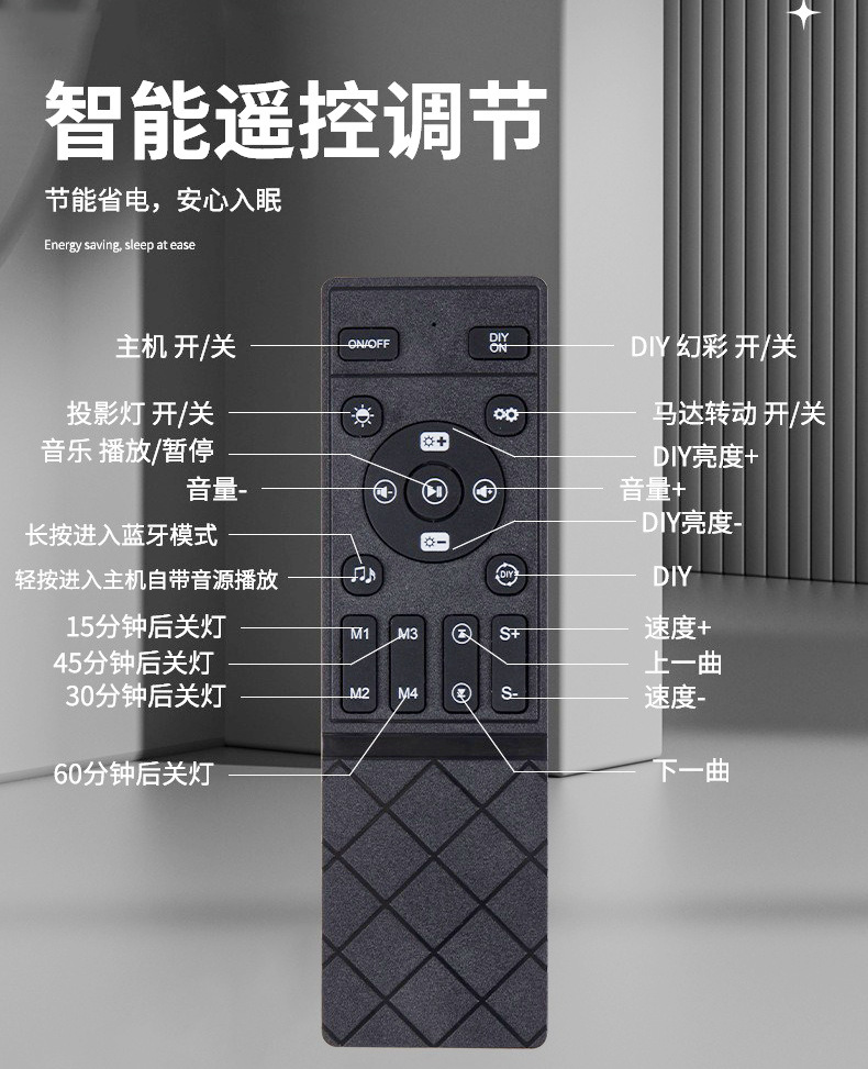 REMOTE智能遥控,一键切换,尽享浪漫星空之夜。躺在床上,漫游银河,专属您的私人宇宙展。