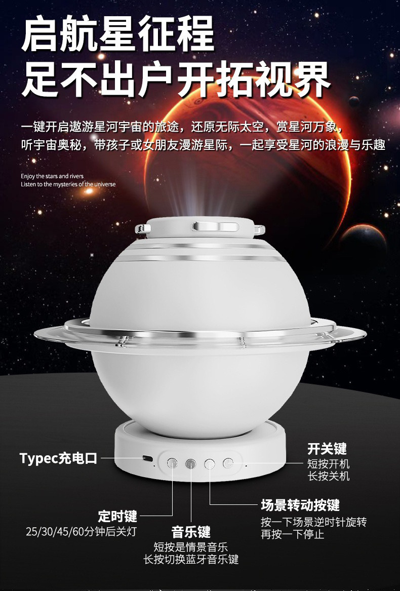 🔋长效可充电,蓝牙音乐同步响起,舞动星辰与旋律。