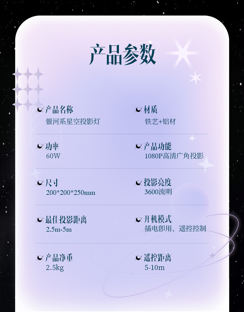 ~60W星河力量,夜幕尽显浩瀚,光影盛宴,卧室秒变宇宙奇观✨