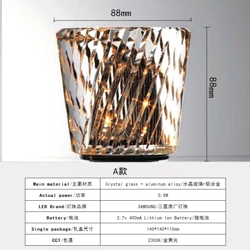 轻奢高级水晶杯氛围灯网红充电酒吧餐厅床头小夜灯伴手礼钻石台灯