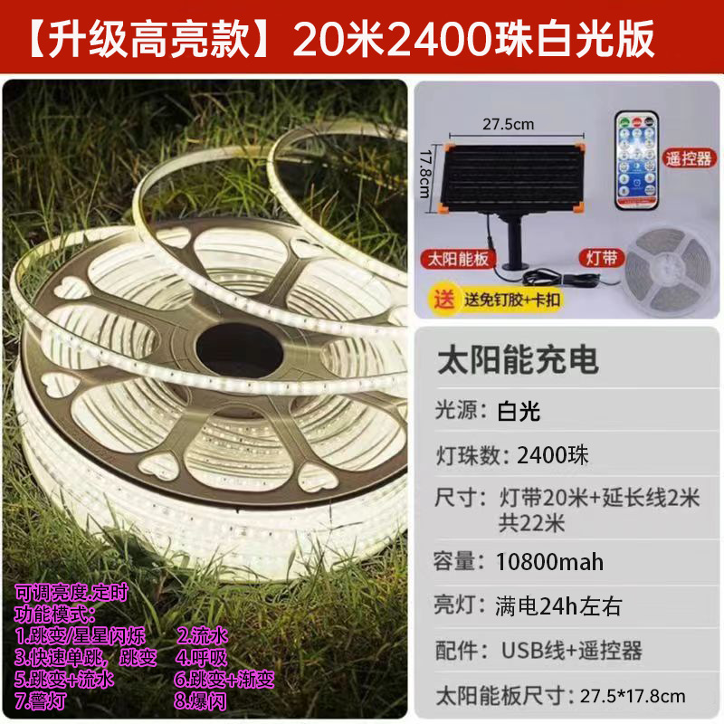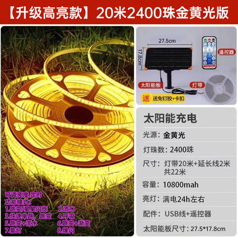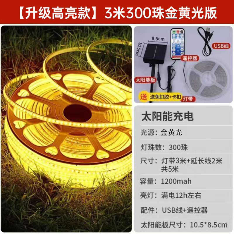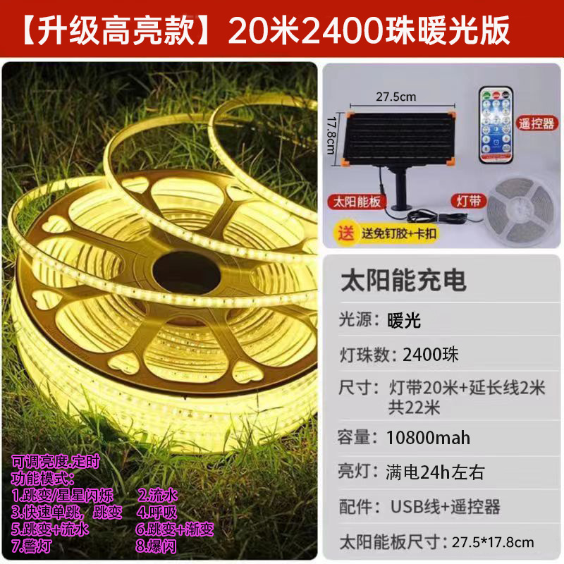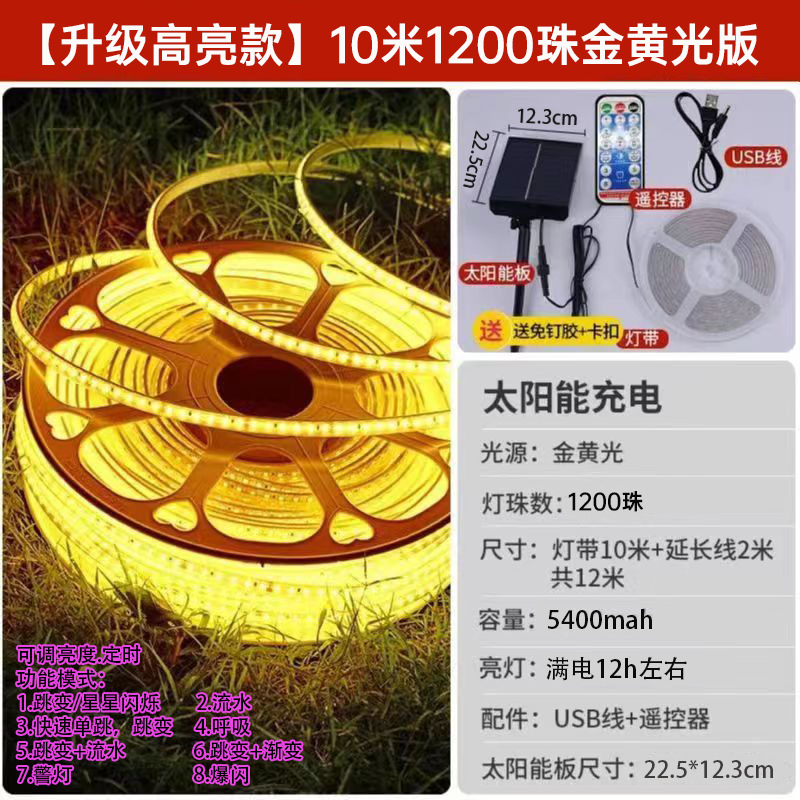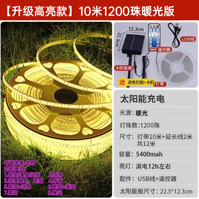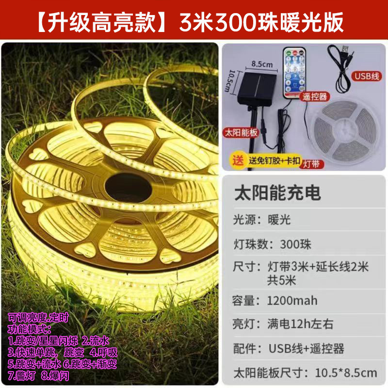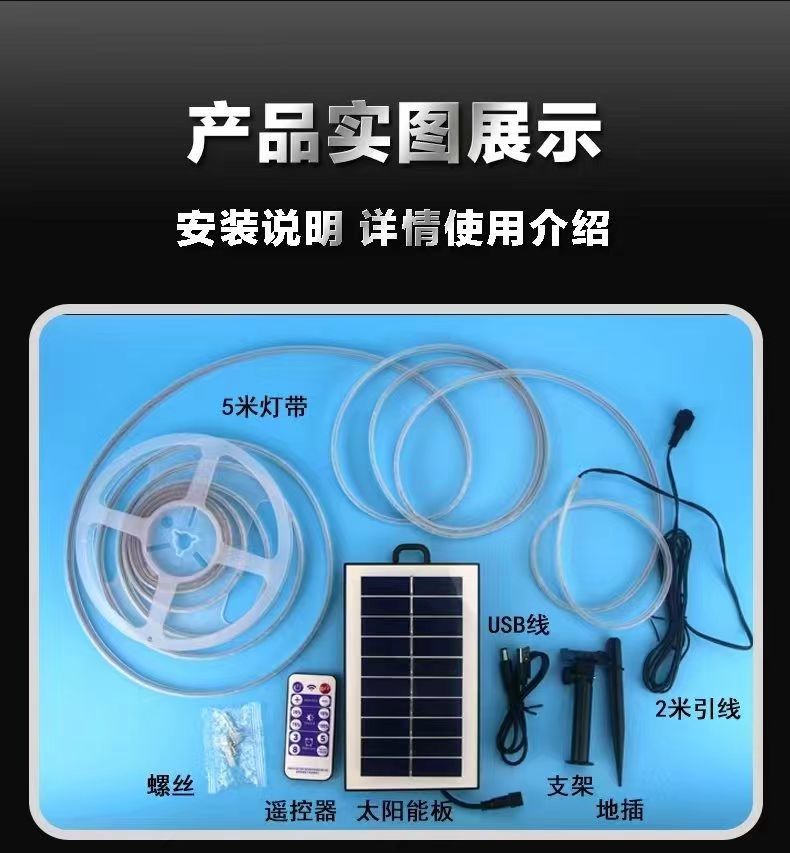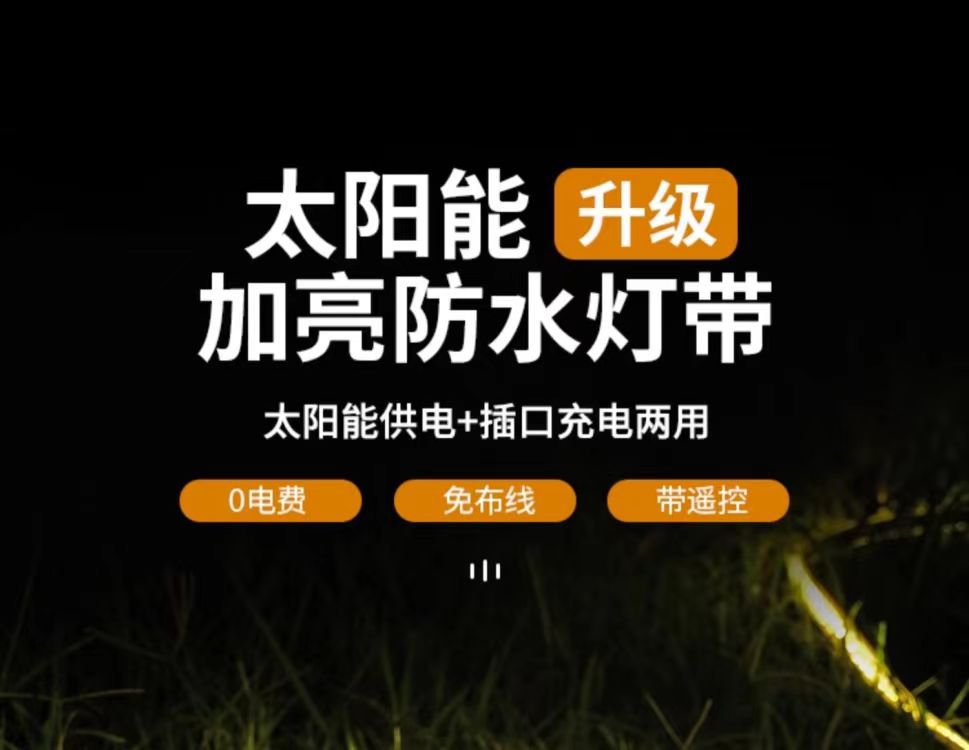 太阳能灯带户外防水可充电露营氛围灯庭院广告栏杆亮化led灯条