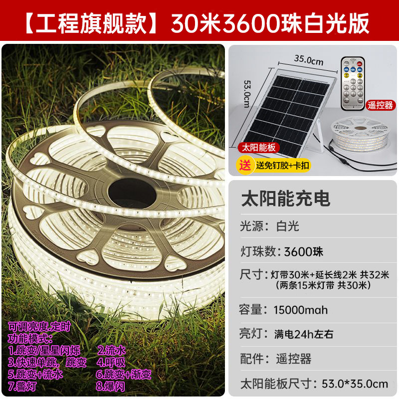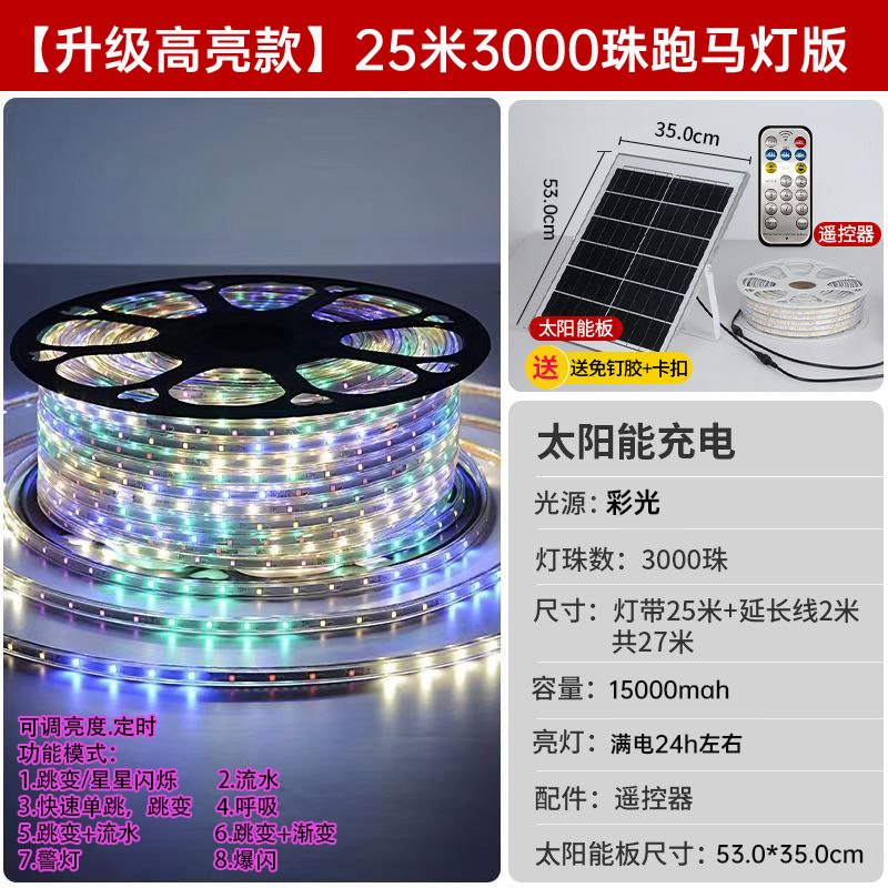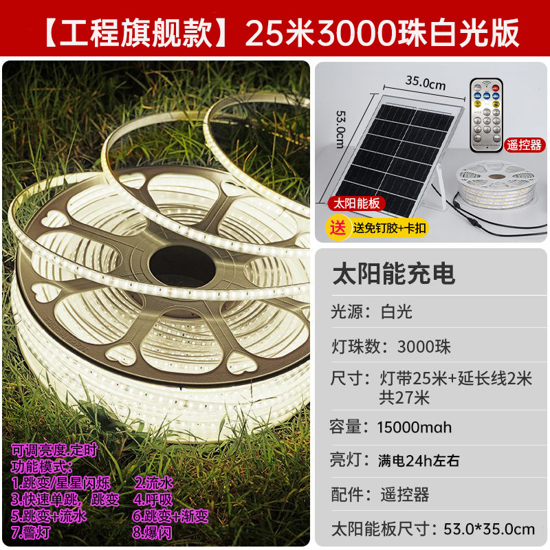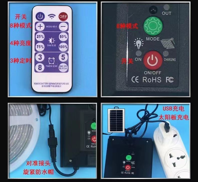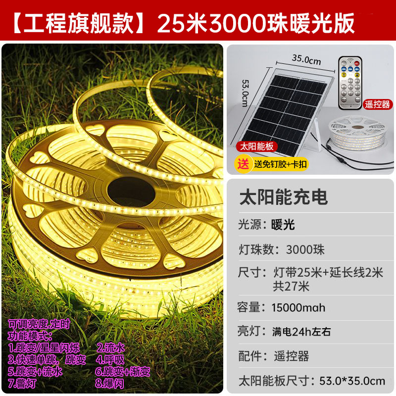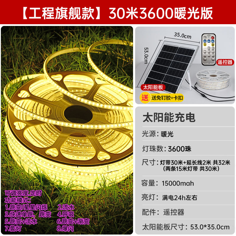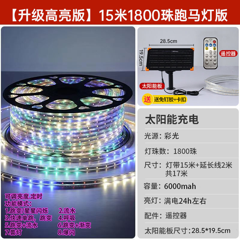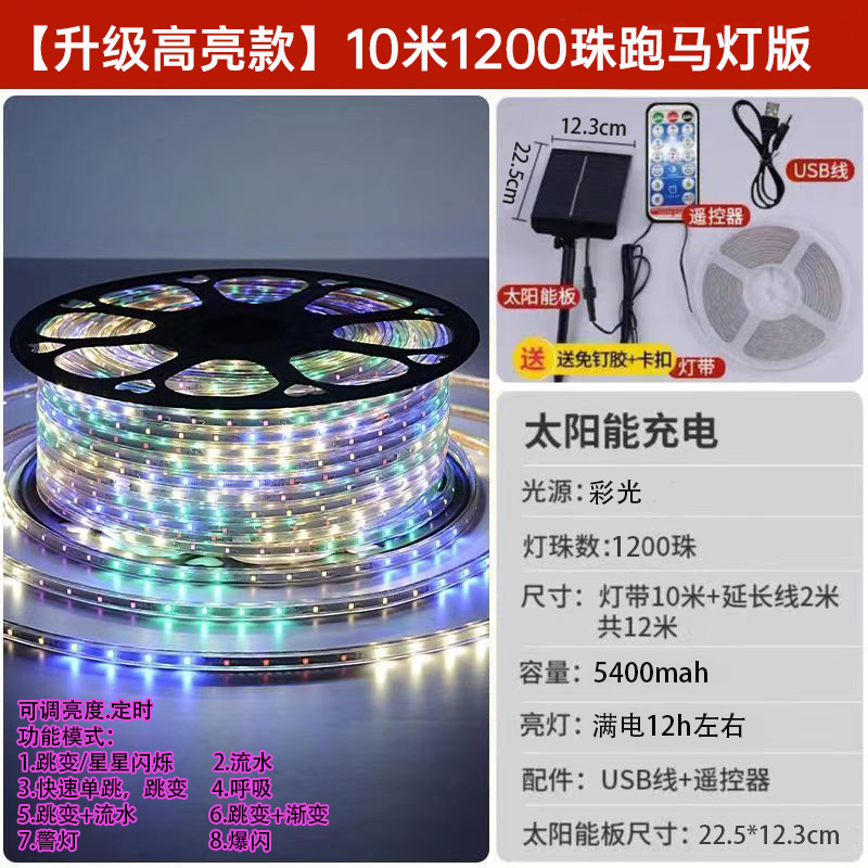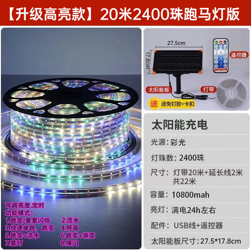 太阳能灯带户外防水可充电露营氛围灯庭院广告栏杆亮化led灯条