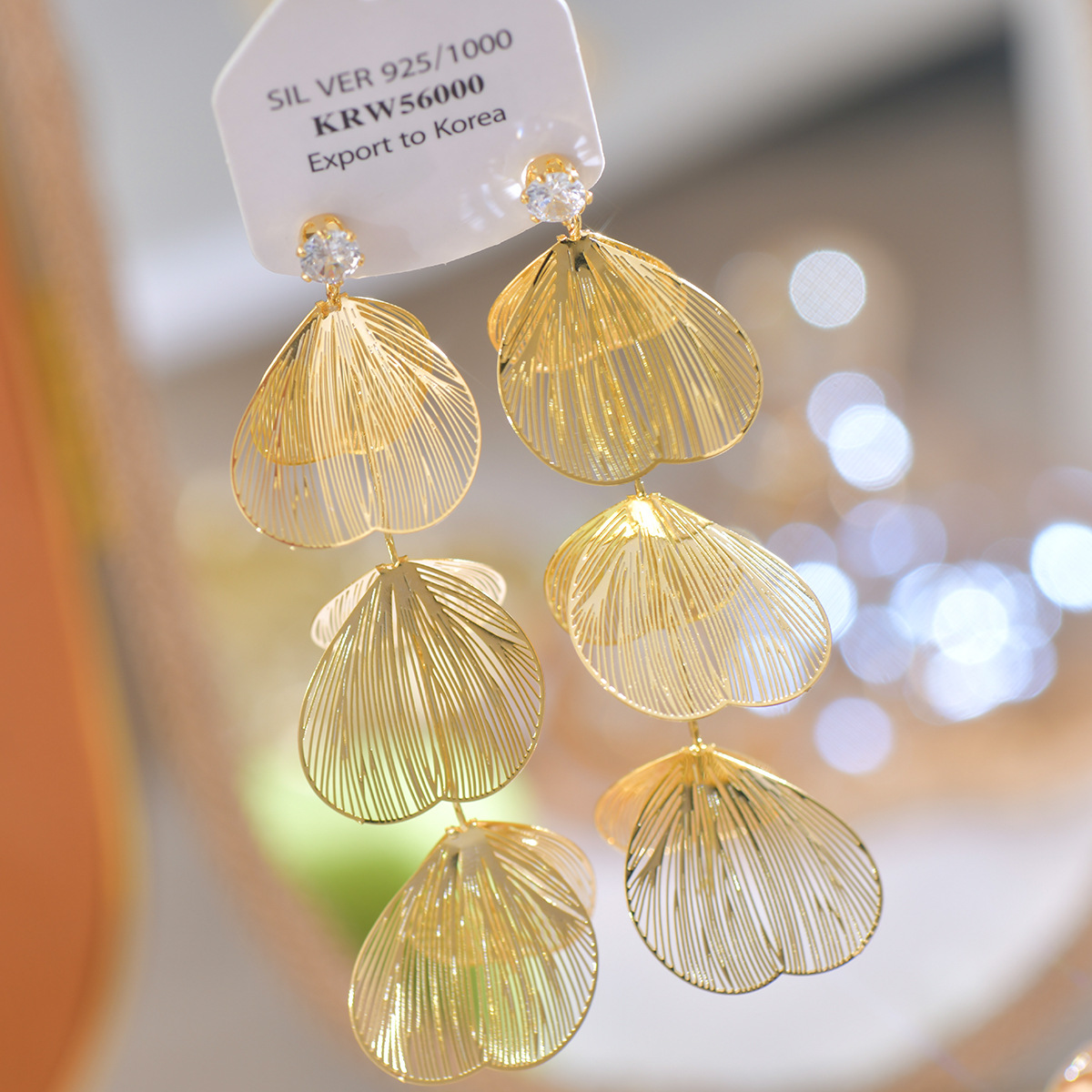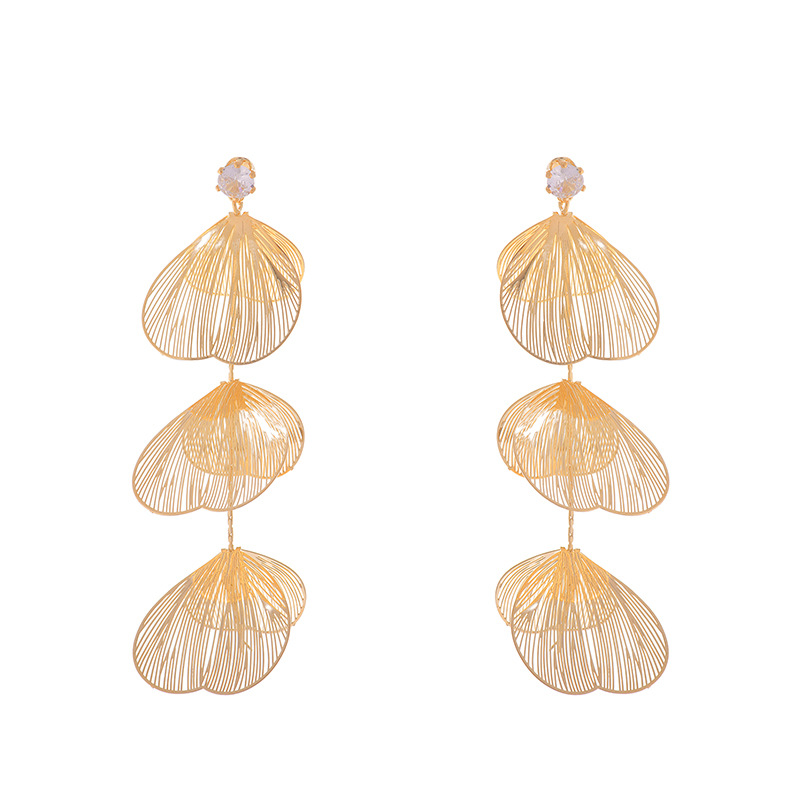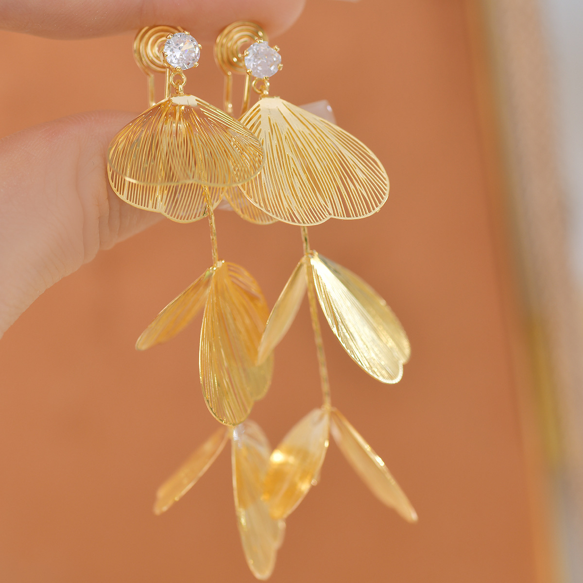 A827锆石花朵长款流苏耳环蝴蝶翅膀夸张设计耳坠气质无耳洞蚊香盘