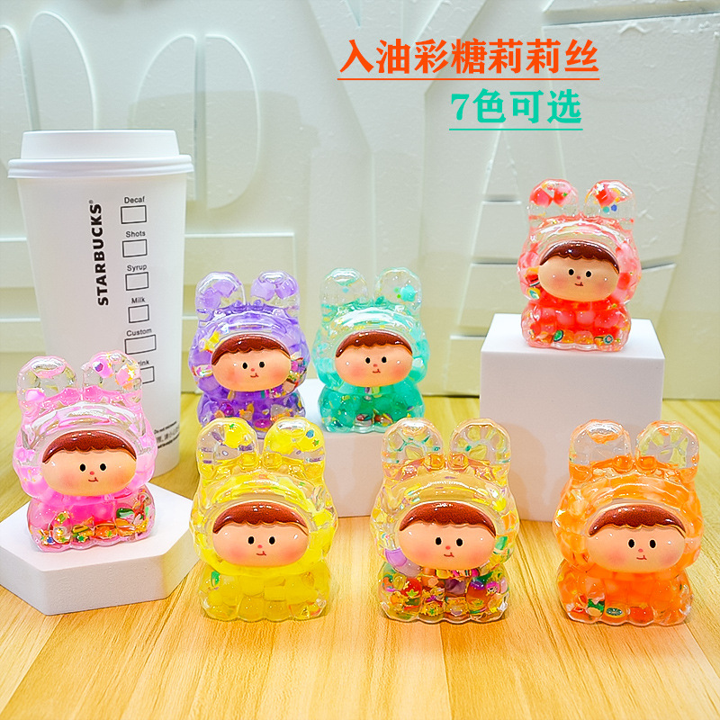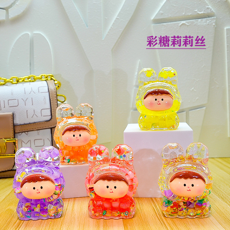 爆款抖音夜光彩糖入油阿玛莉莉丝立体钥匙扣潮玩兔子DIY摆件批发