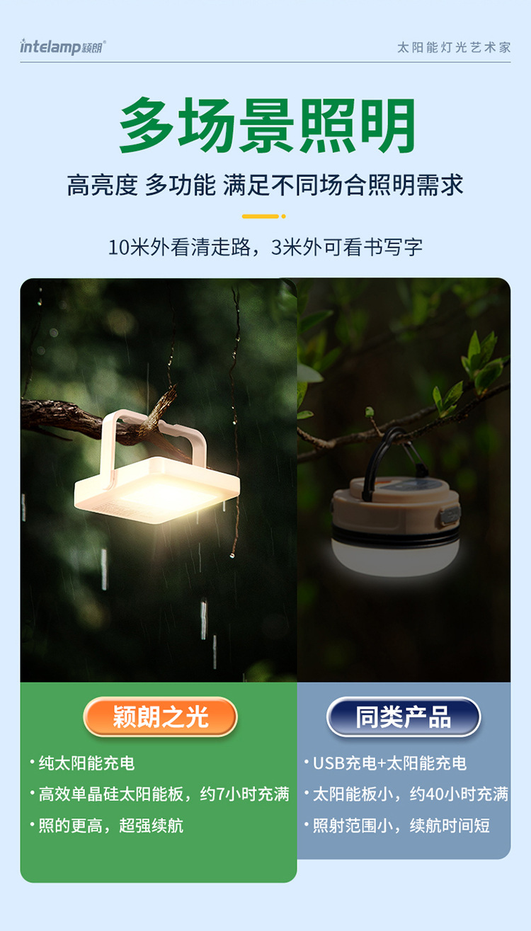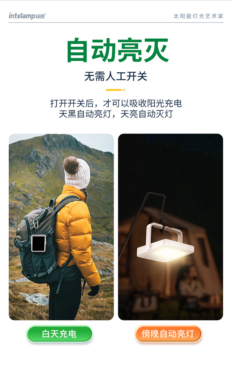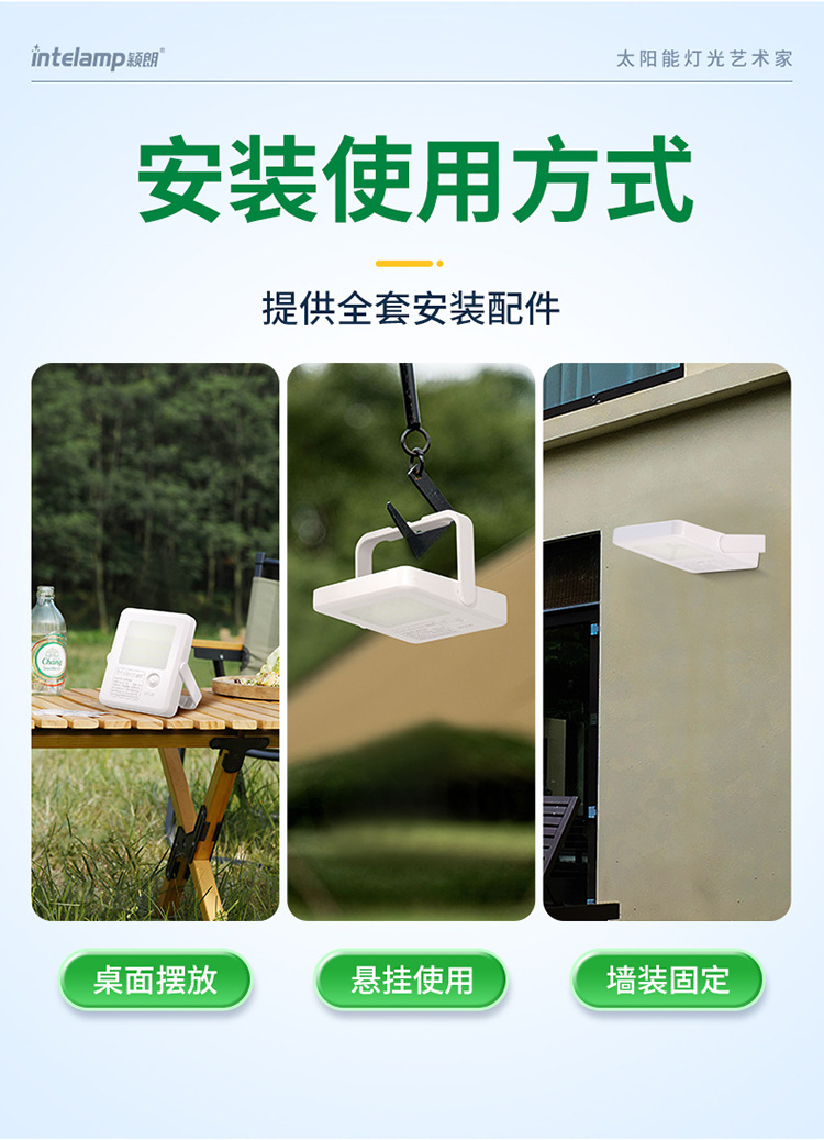 跨境太阳能灯solar便携照明方形防水家用庭院露营户外led应急灯