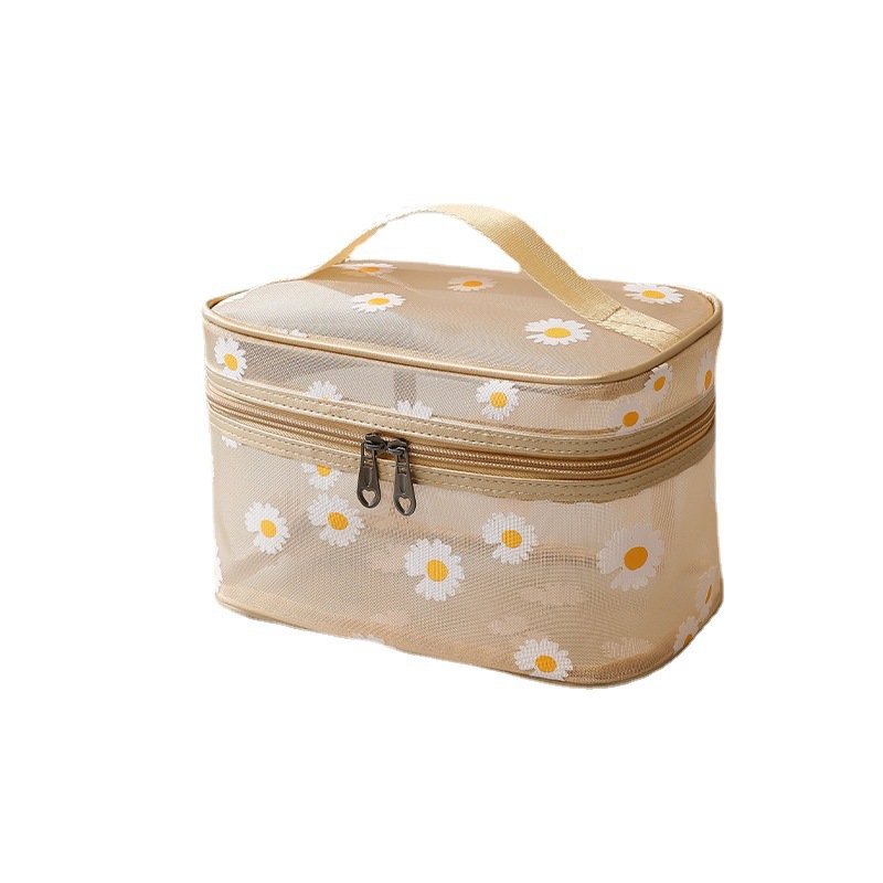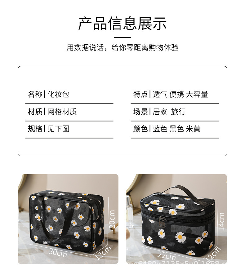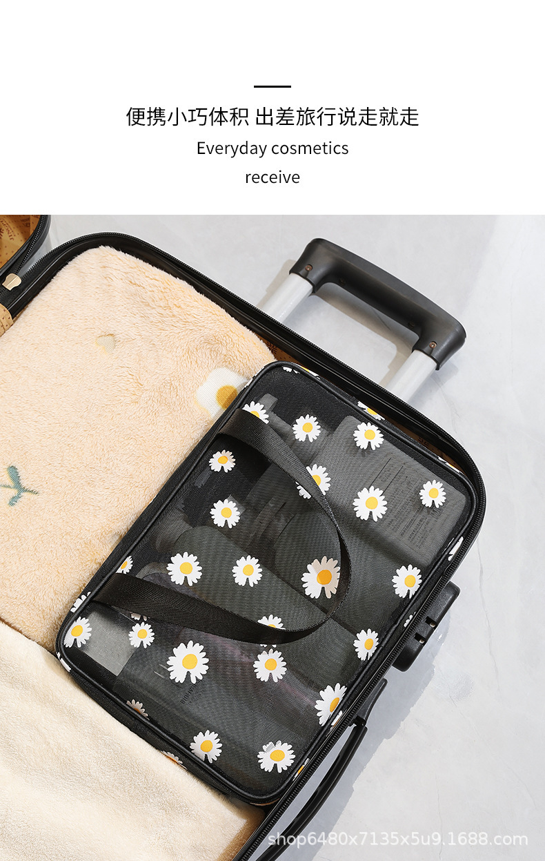 新款网纱花朵手提洗漱化妆包旅行便携大容量洗浴护肤品游泳收纳包