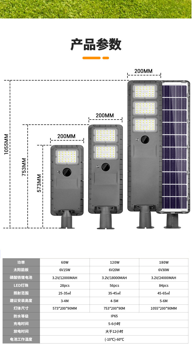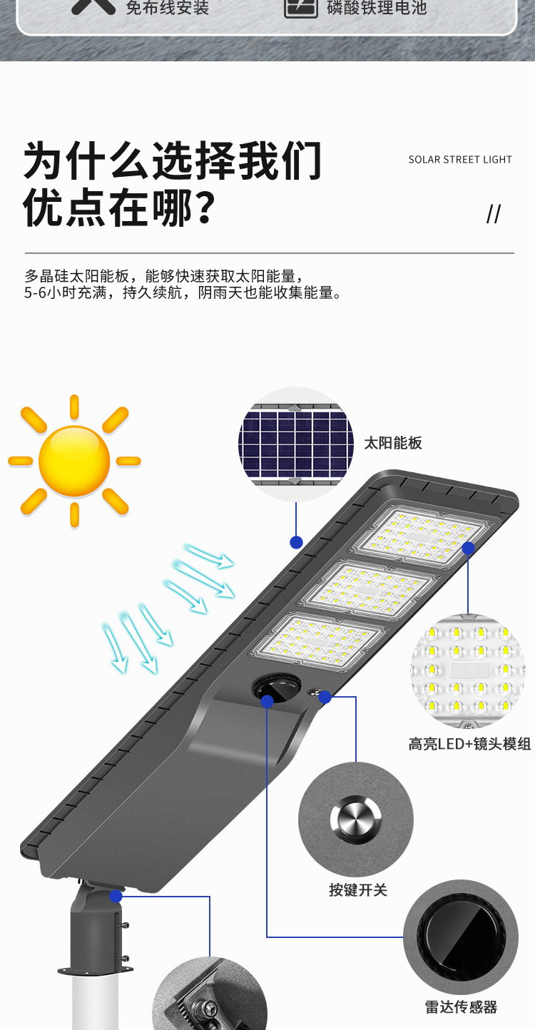户外庭院道路照明灯工程感应款 60w120w180w一体化高亮太阳能路灯