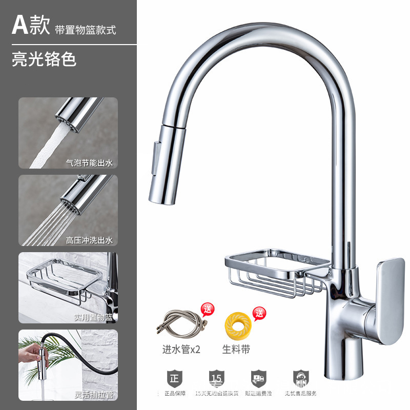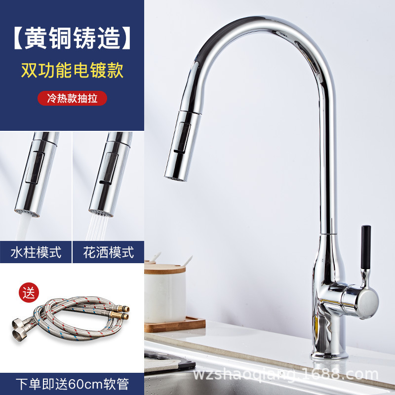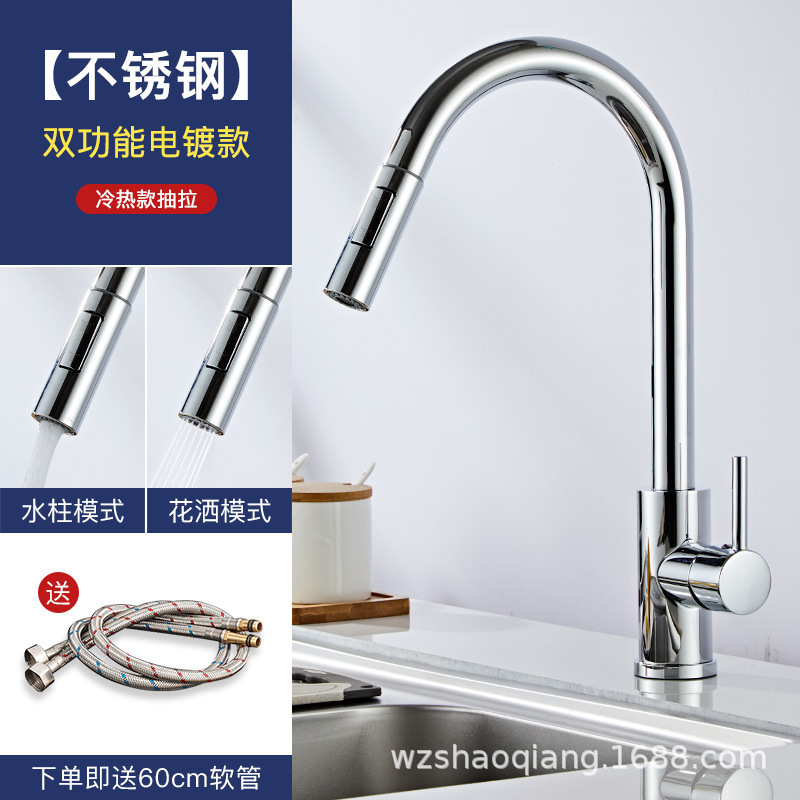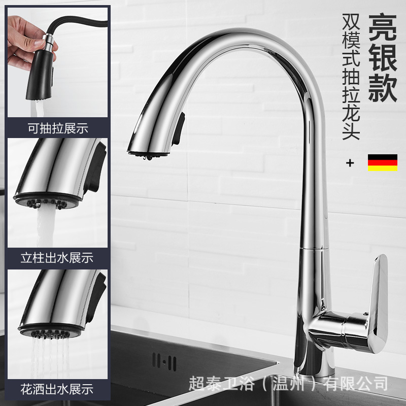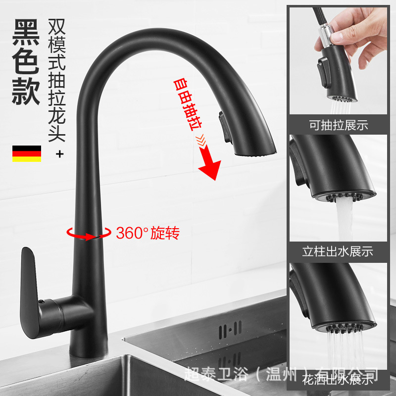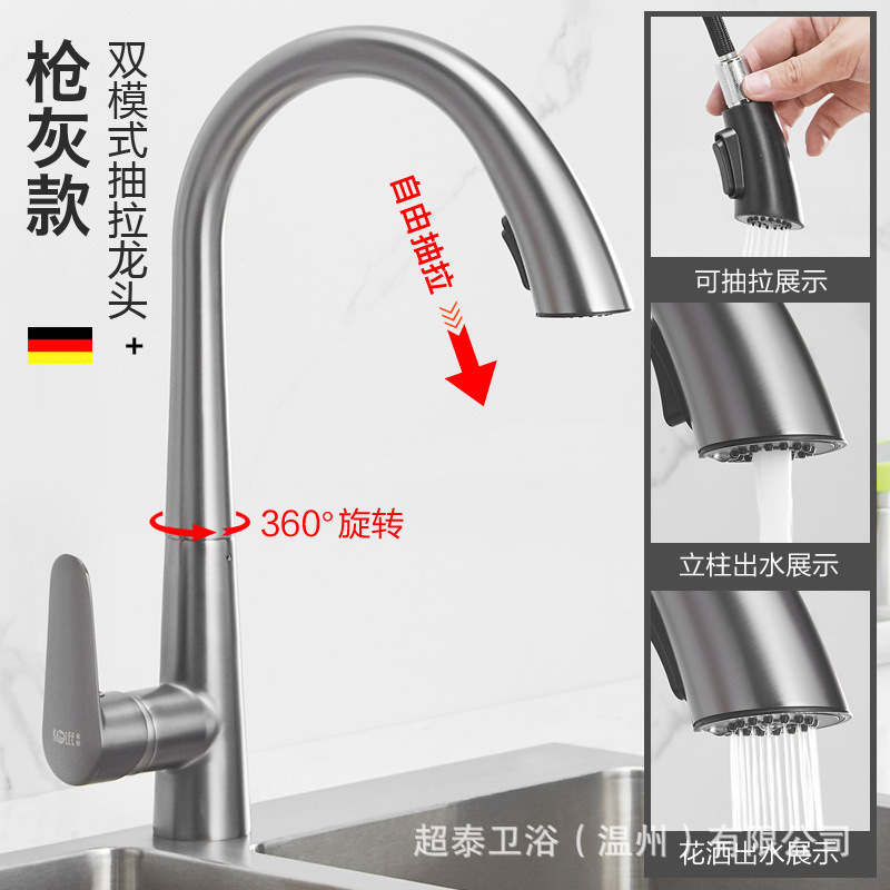 跨境外贸厨房抽拉式水龙头全铜304不锈钢双出水冷热洗菜盆水槽伸