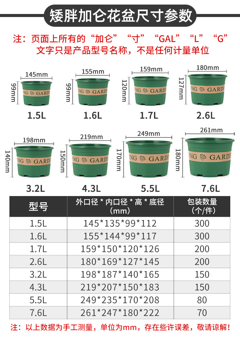 | short stout 1.6 gallon basin (outer caliber 155 * height 99mm)300 pieces per piece(矮胖1.6加仑盆(外口径155*高99mm)300个一件) | USD $0.18 | 999999 piece available |