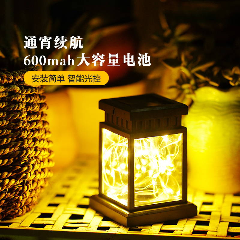 跨境太阳能灯小宫灯led小风灯庭院灯小夜灯防水吊灯仿真蜡烛灯笼