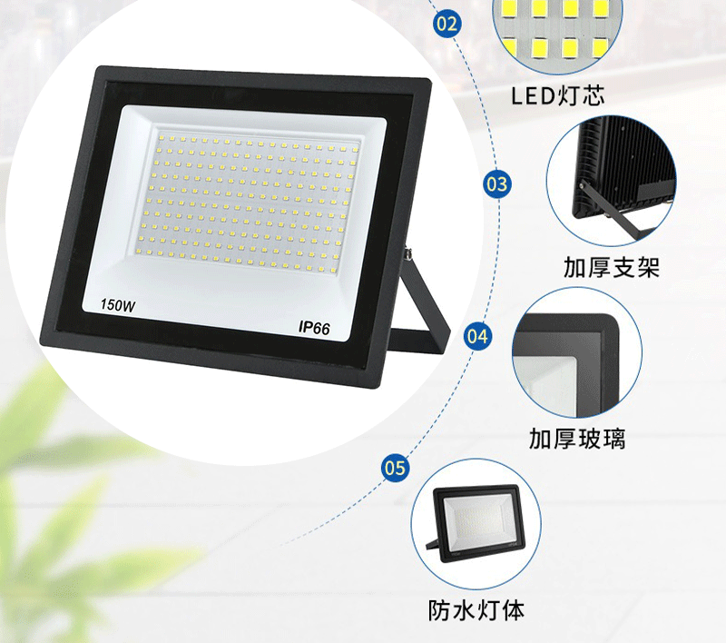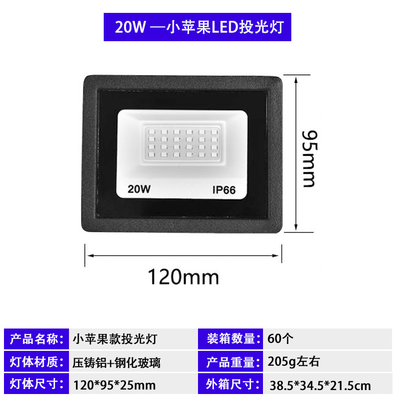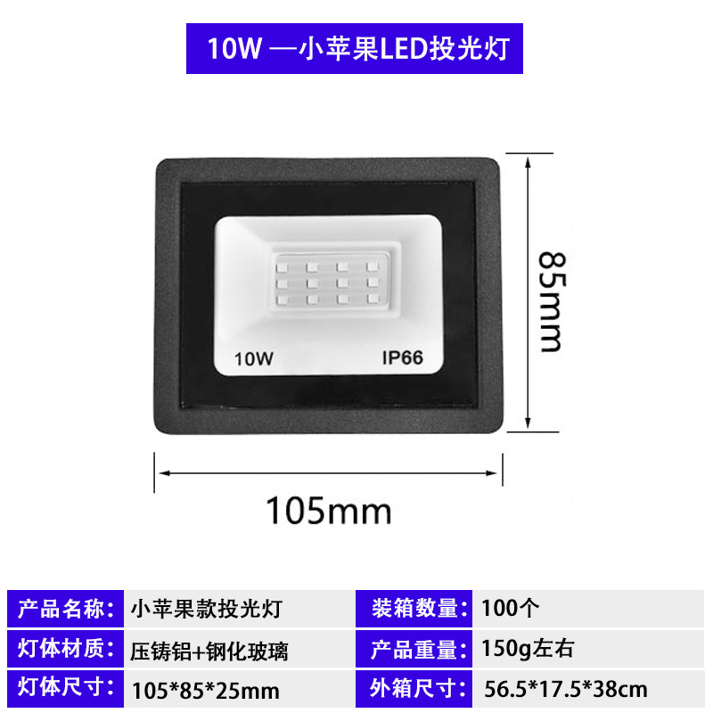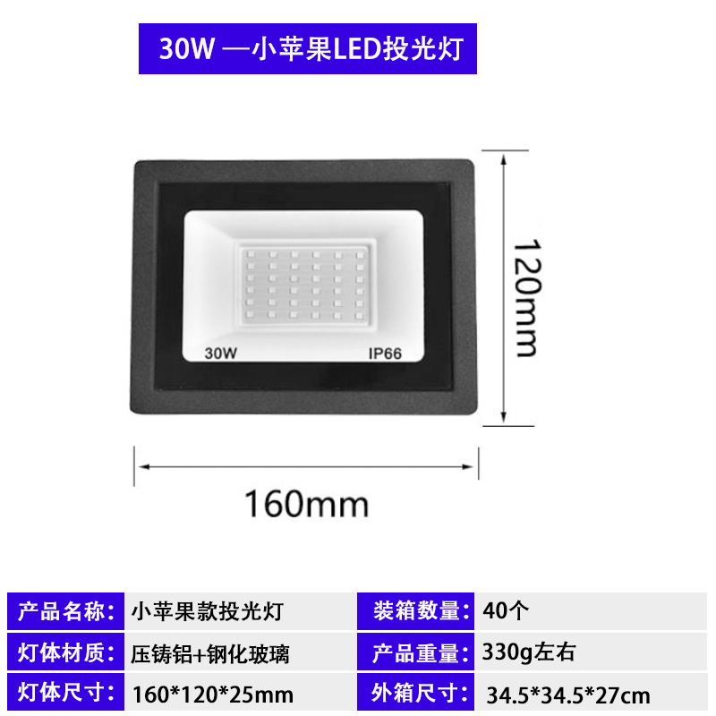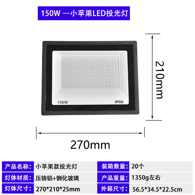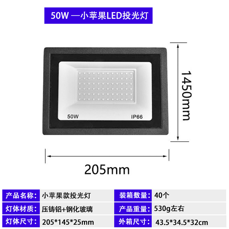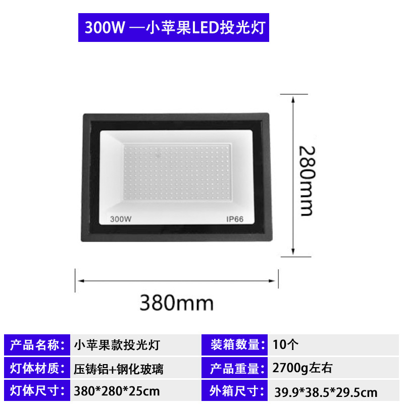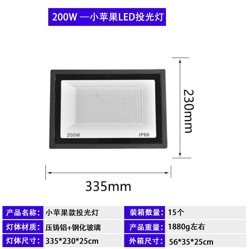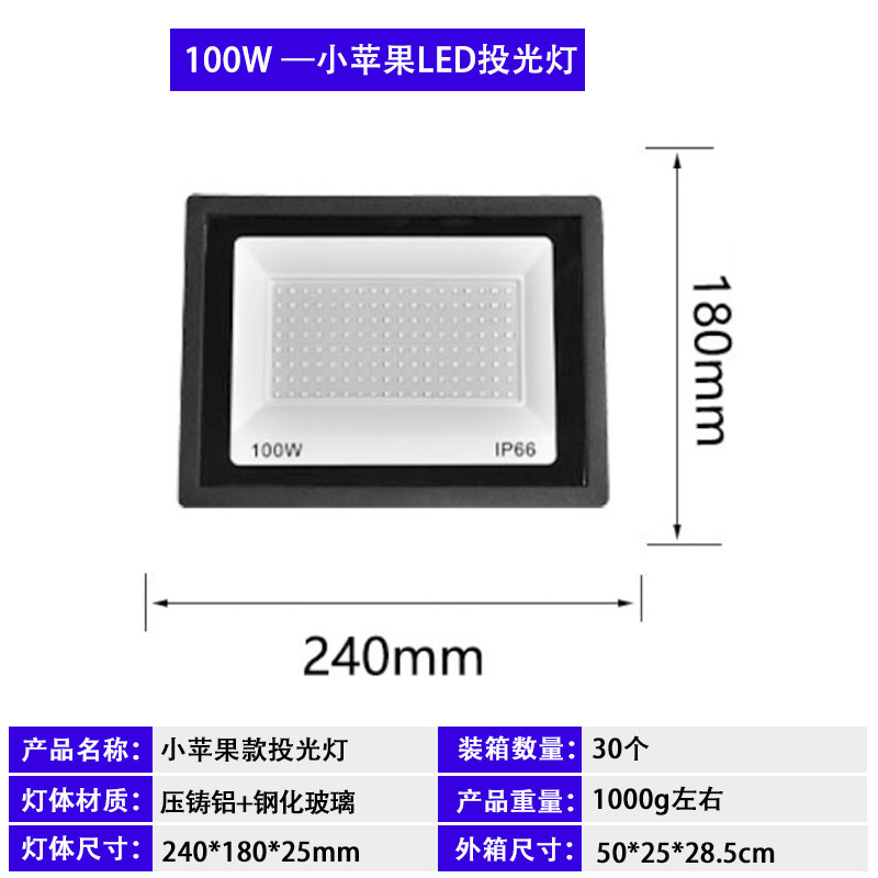 跨境led投光灯100W200W户外防水照明泛光灯小苹果超薄线性投射灯