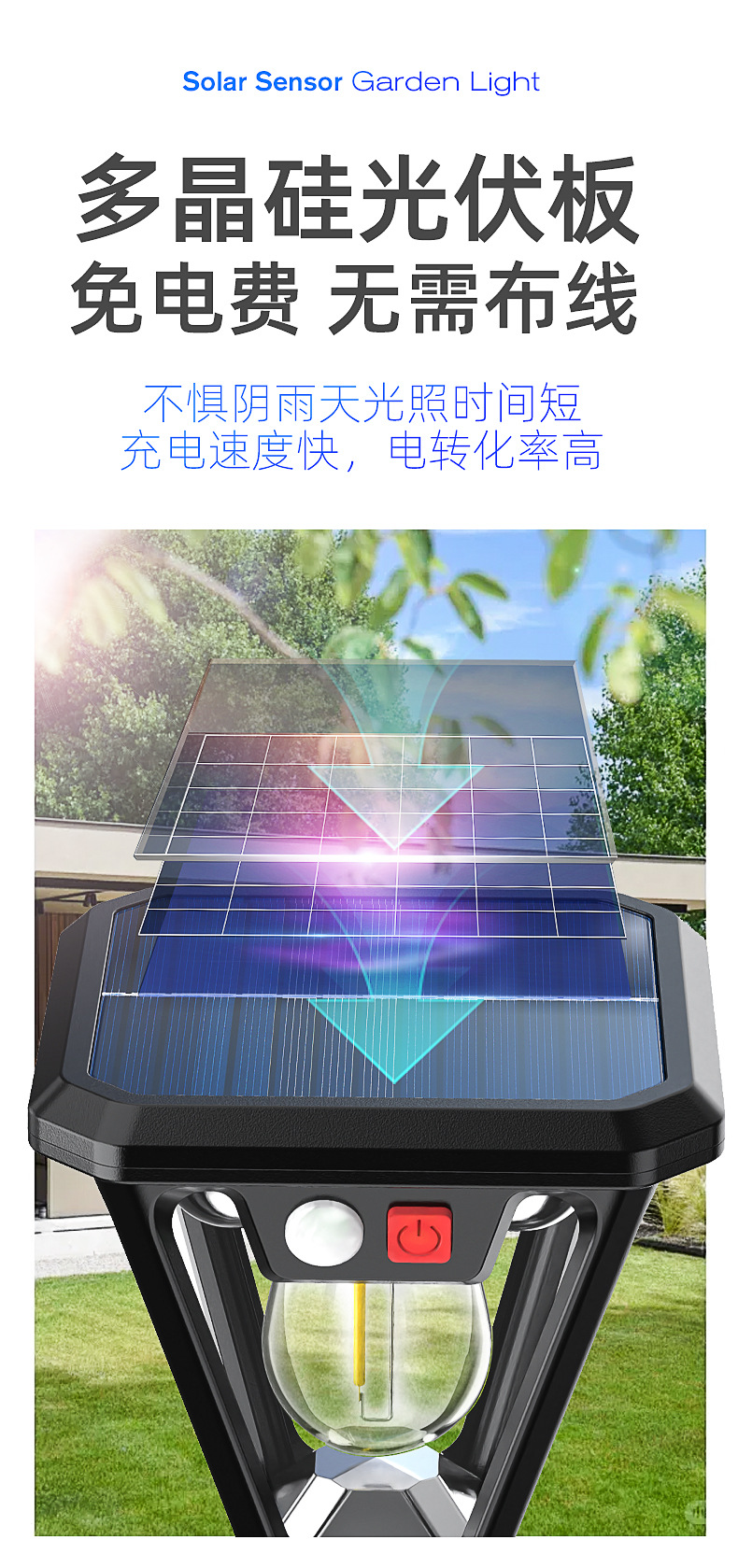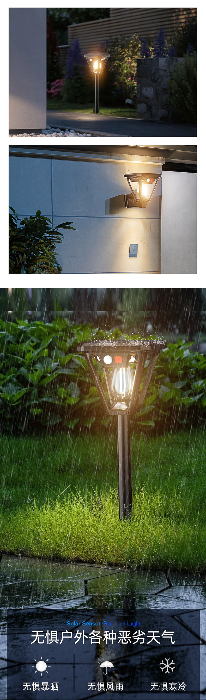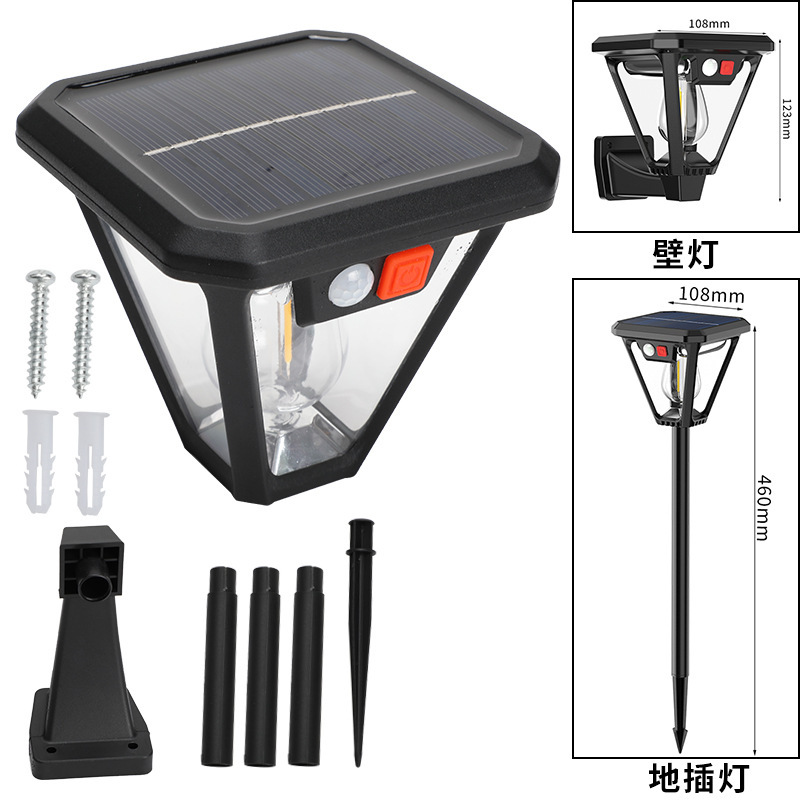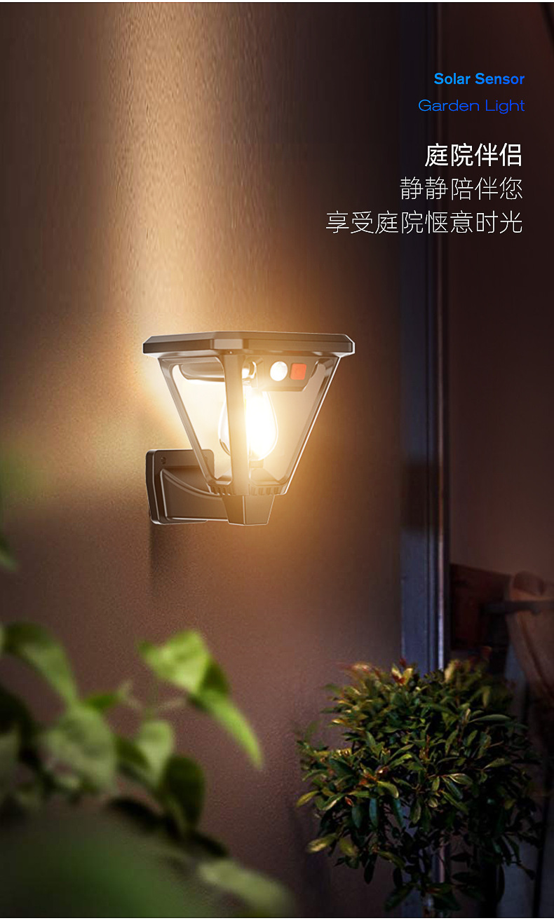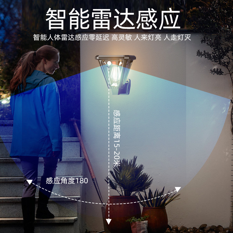 跨境新款太阳能庭院灯 户外防水感应壁灯LED景观草坪照明围墙灯