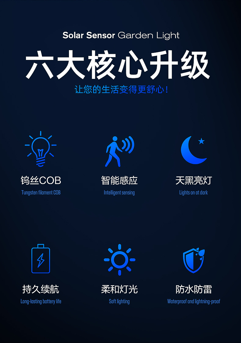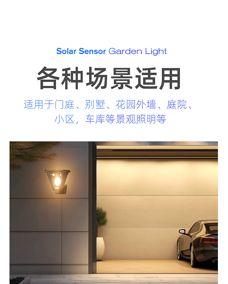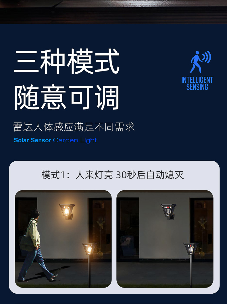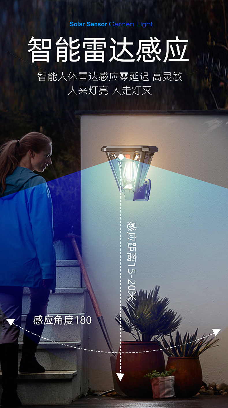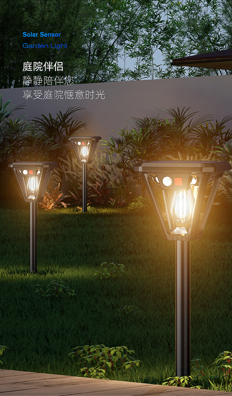 跨境新款太阳能庭院灯 户外防水感应壁灯LED景观草坪照明围墙灯