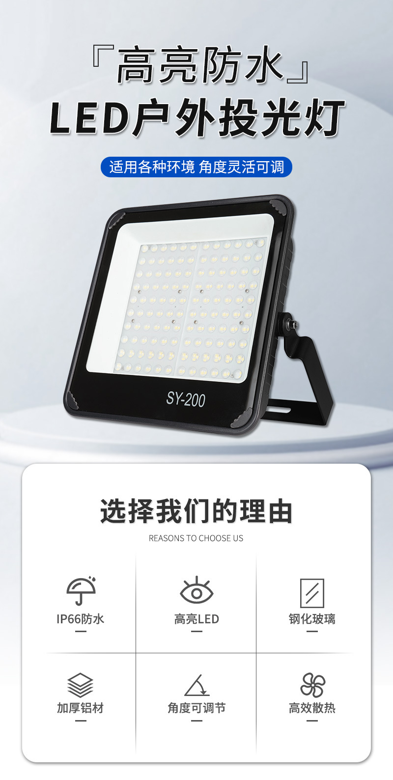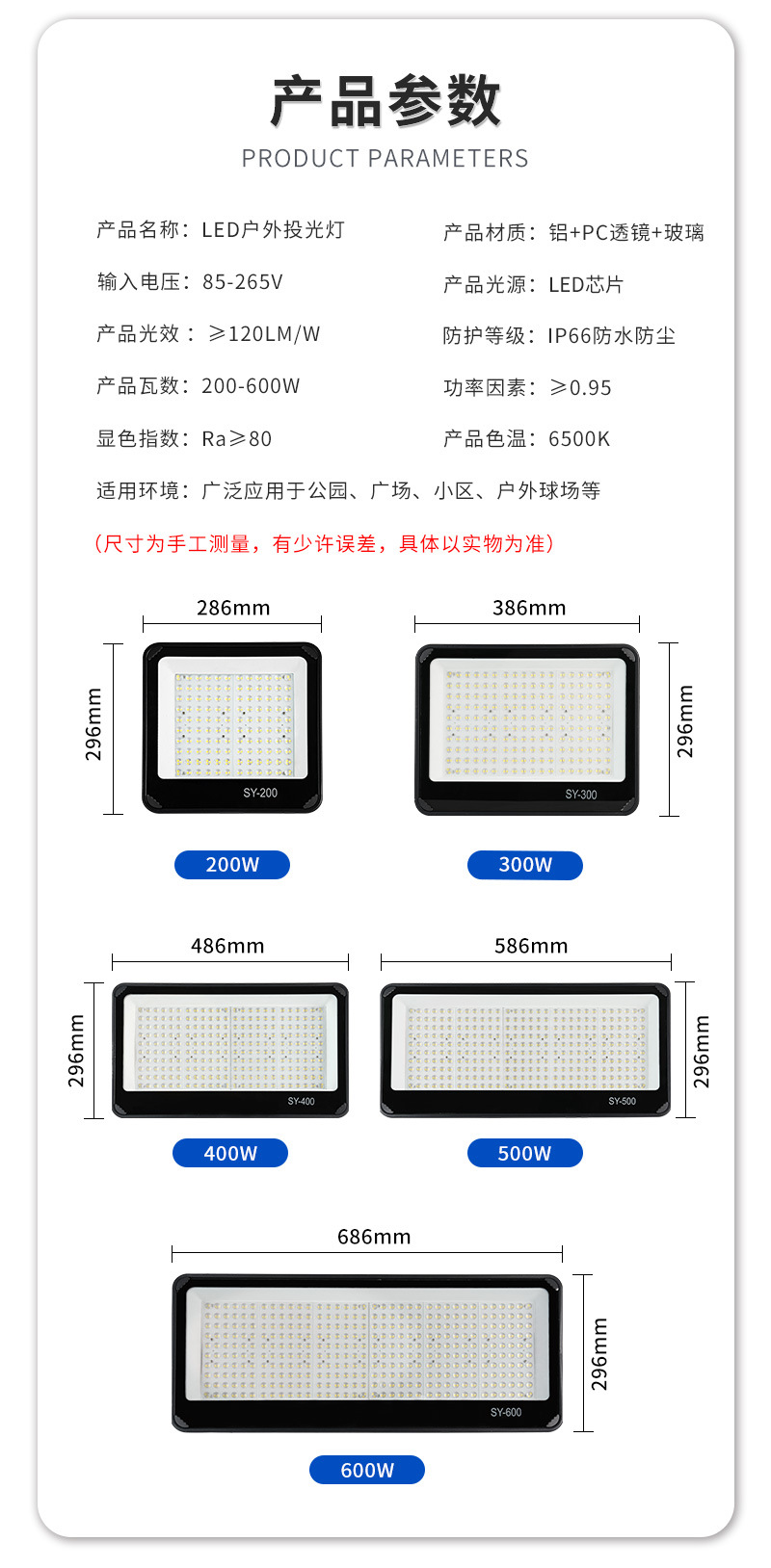 跨境大功率led投光灯 户外防水高流明工地投射照明400W透镜泛光灯