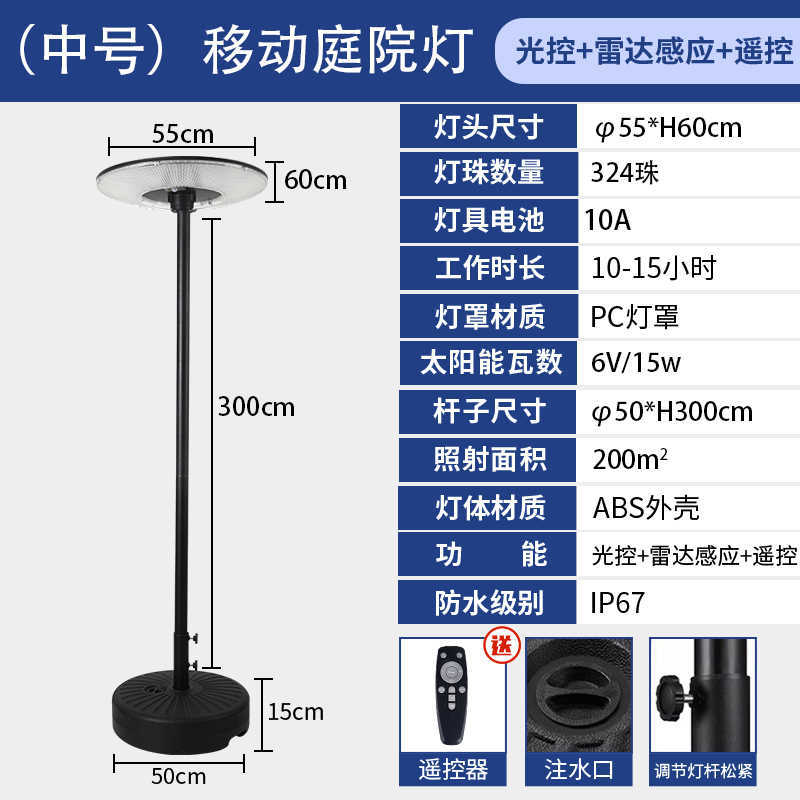 跨境太阳能庭院灯便携式移动别墅花园露台露营飞碟感应照明路灯