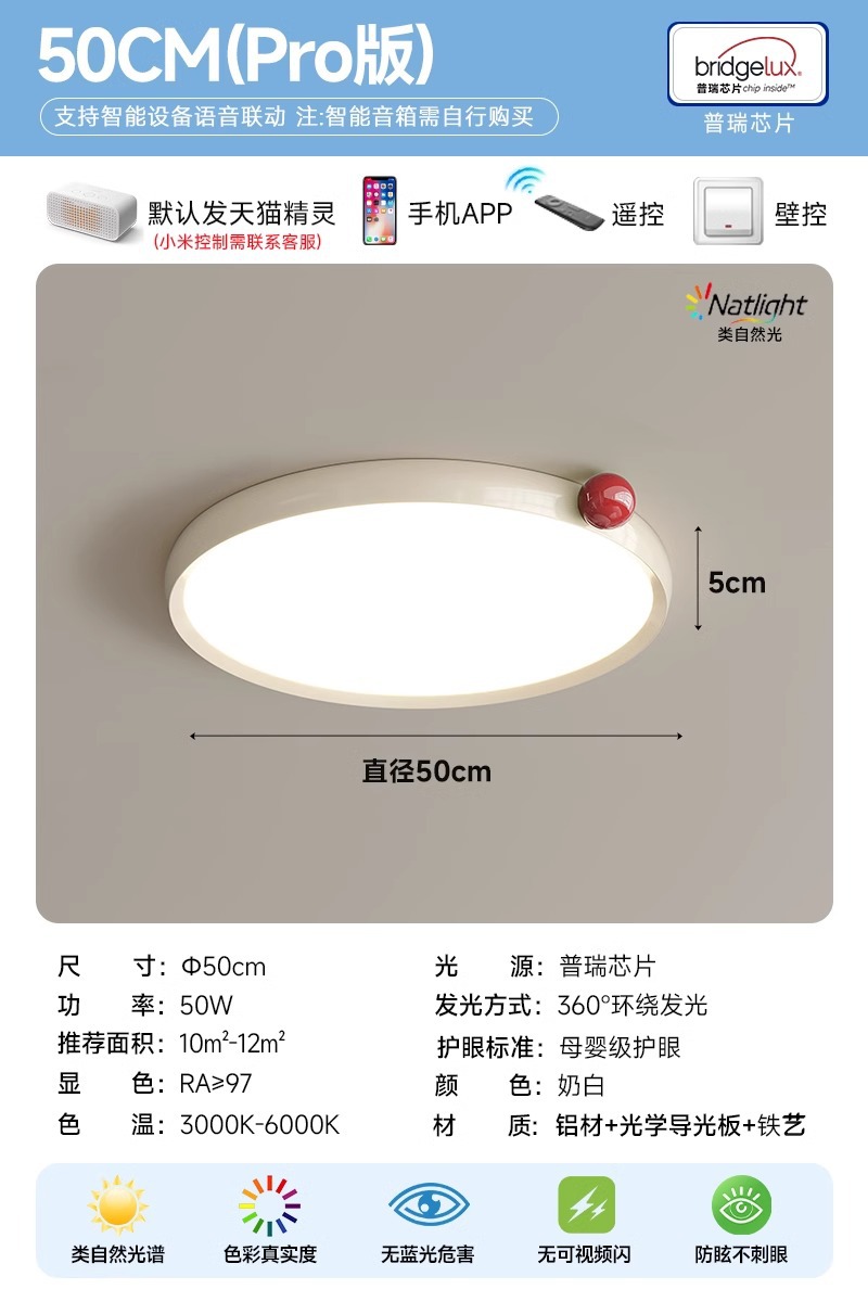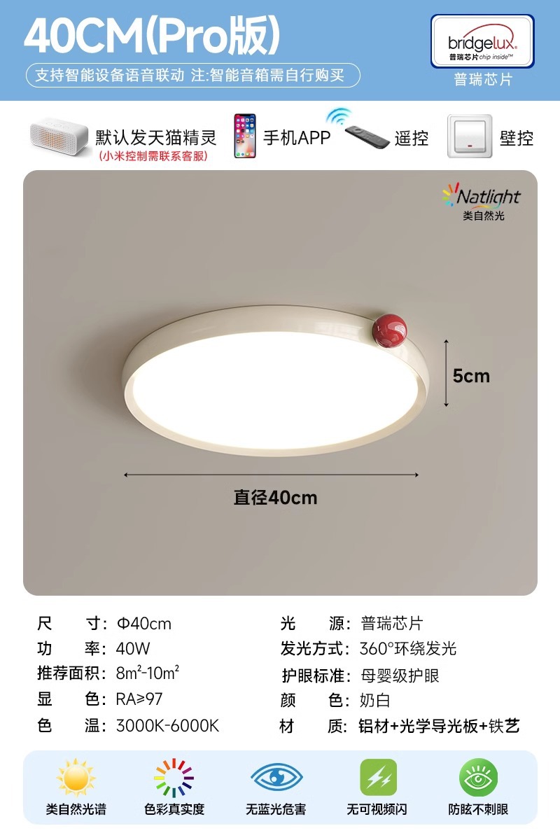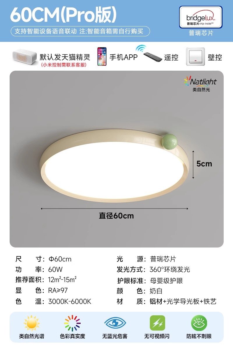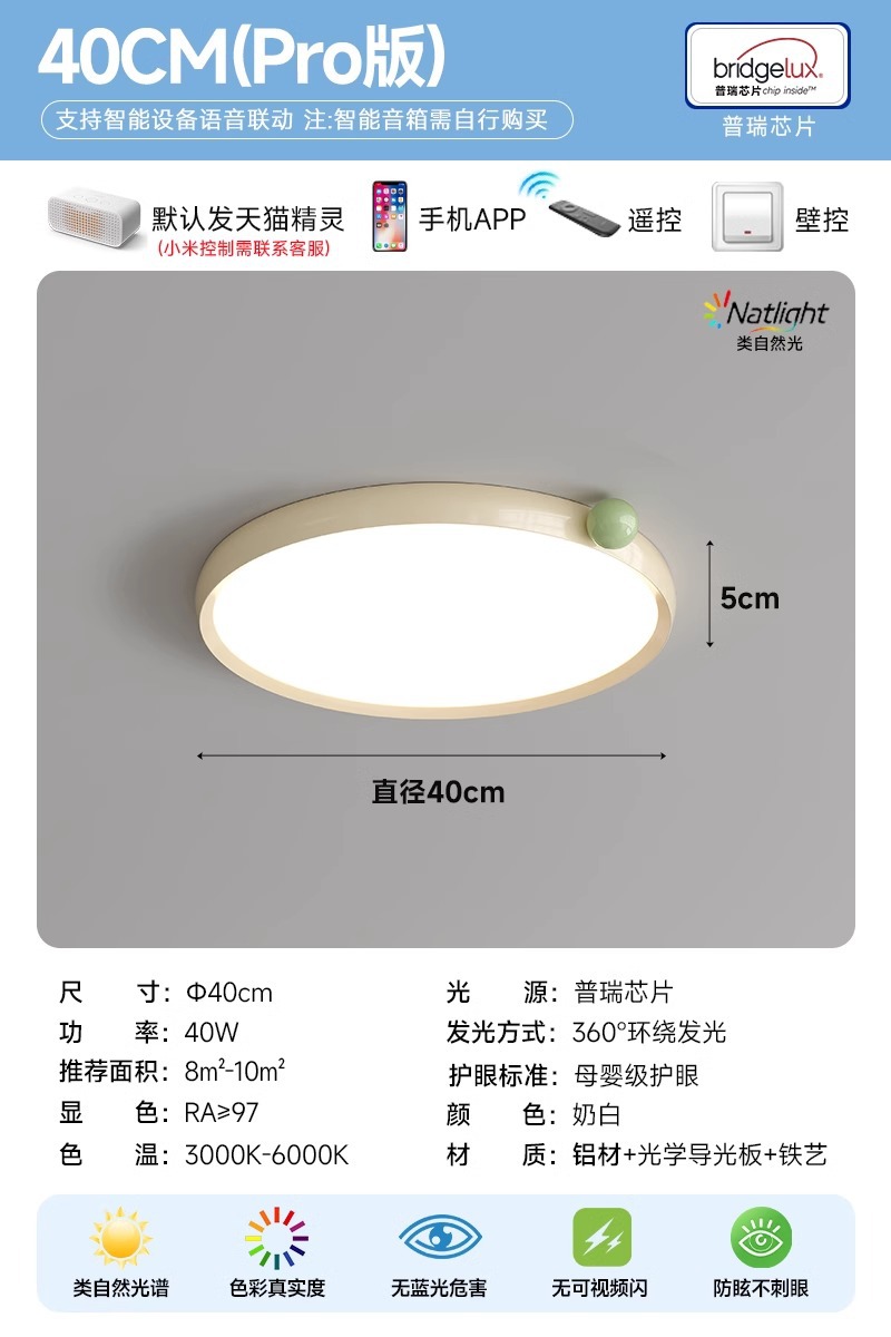 包豪斯全光谱主卧室灯果果灯书房吸顶灯2024新款简约护眼中山灯具