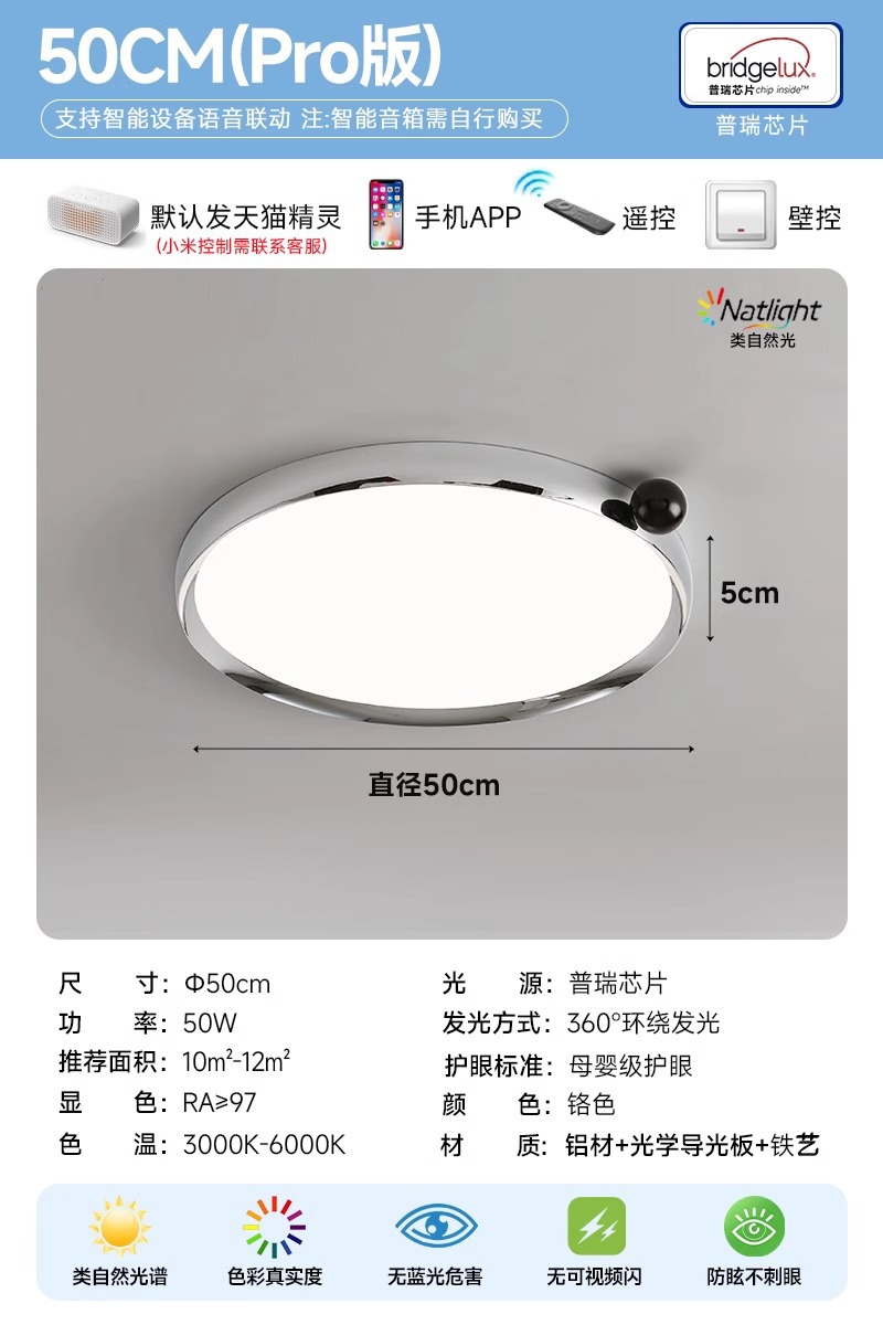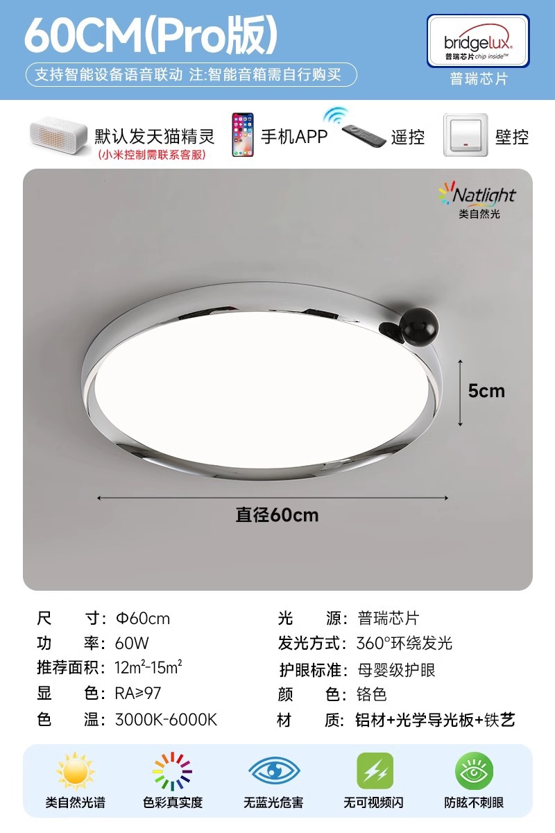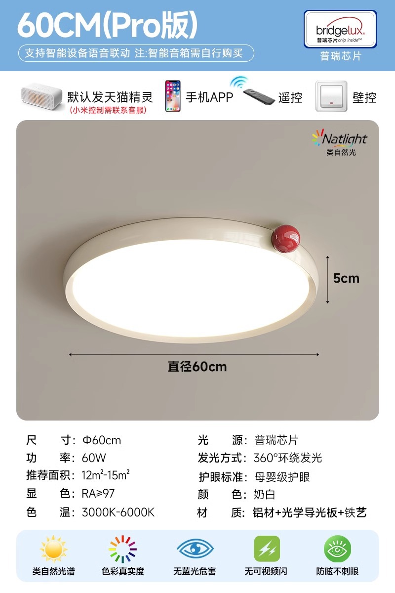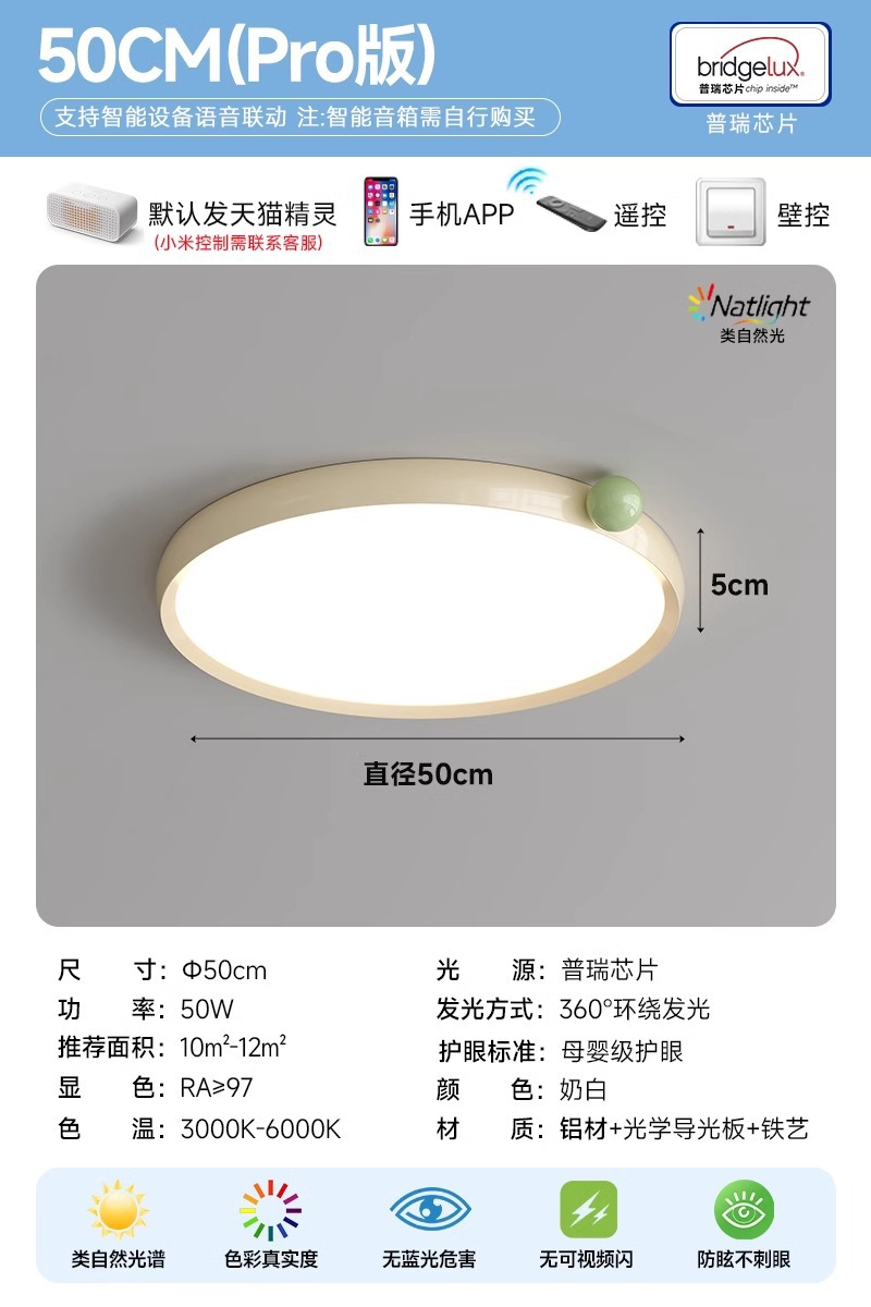 包豪斯全光谱主卧室灯果果灯书房吸顶灯2024新款简约护眼中山灯具