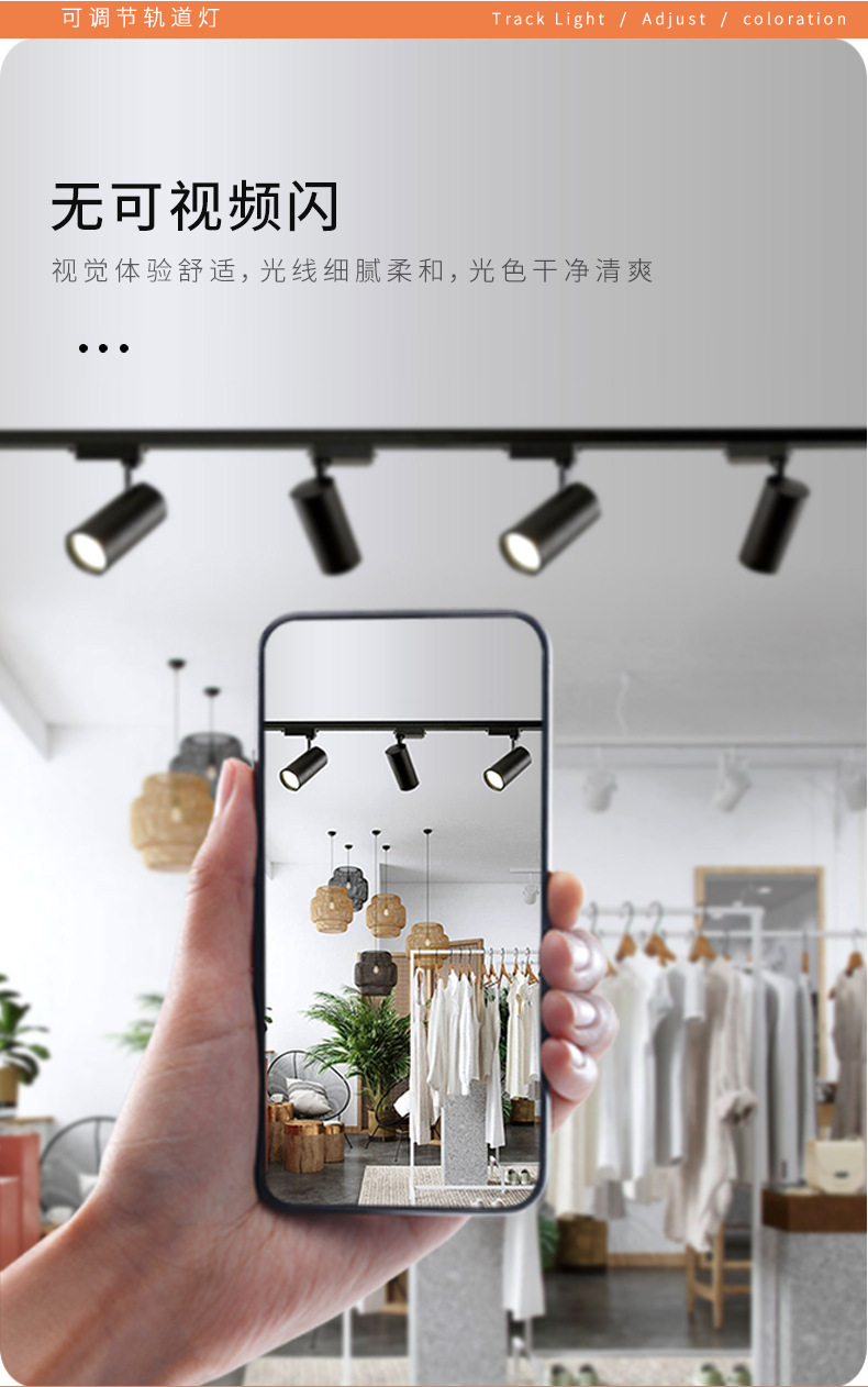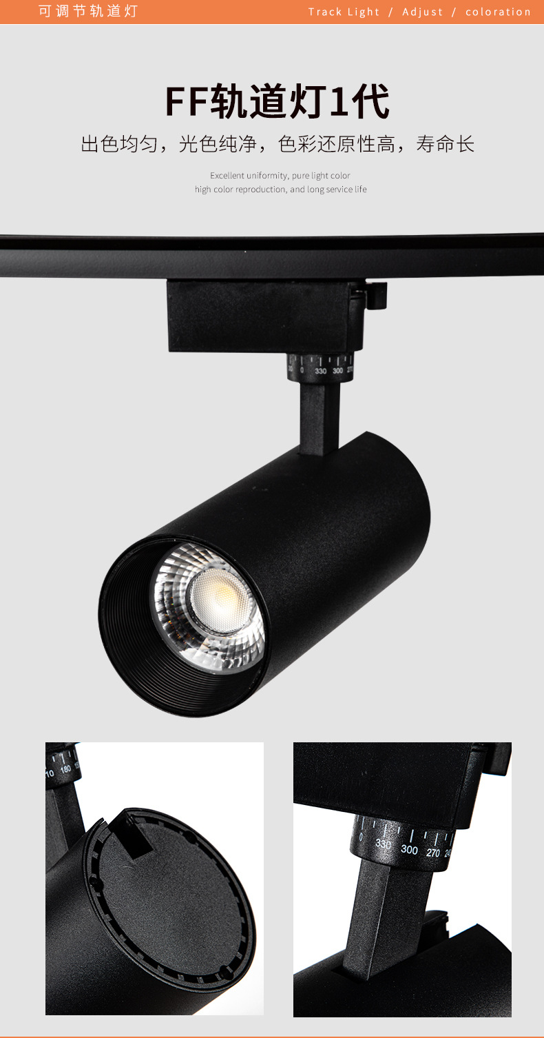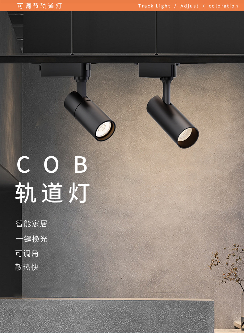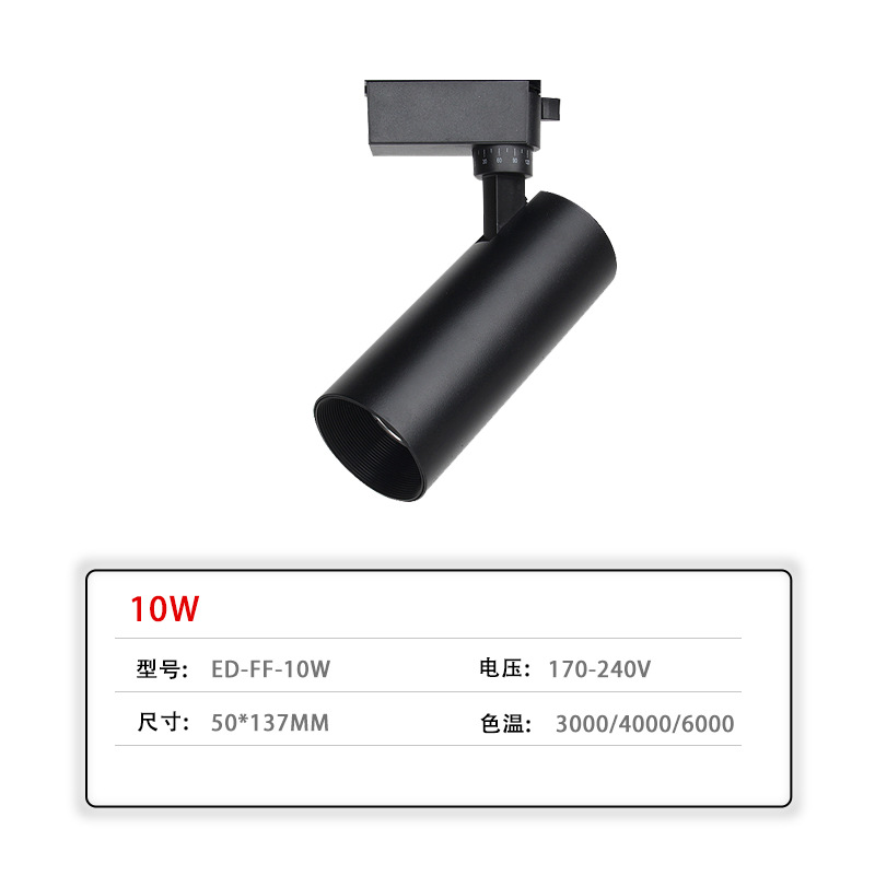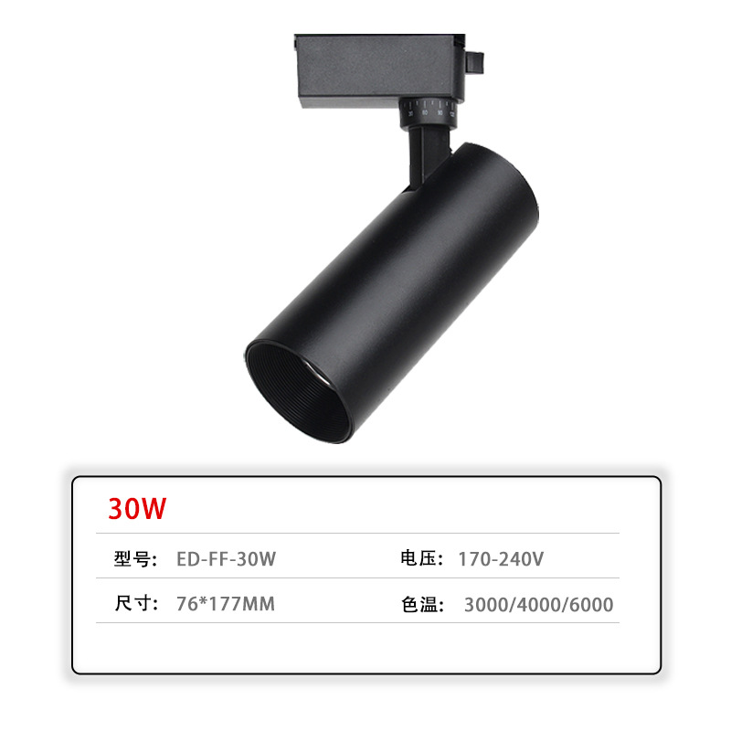 LED轨道灯商业照明批发服装店展厅聚光直筒射灯二线商用cob导轨灯