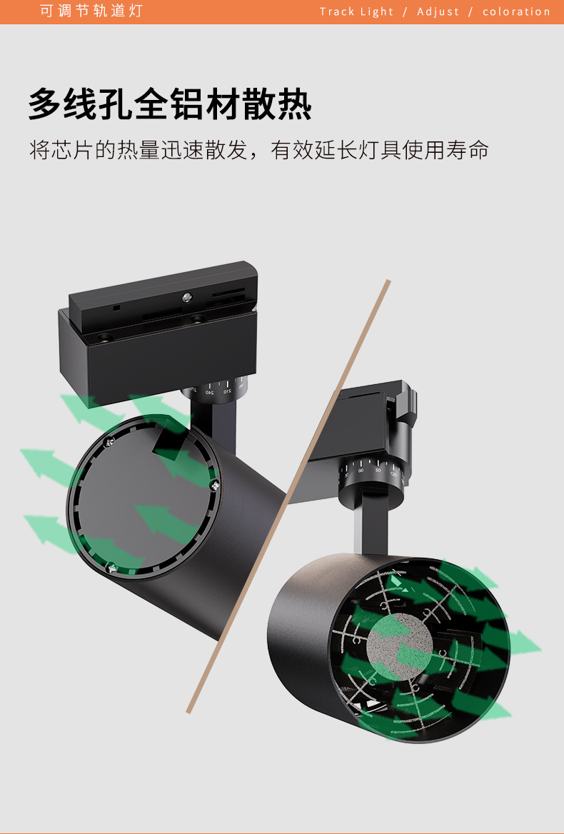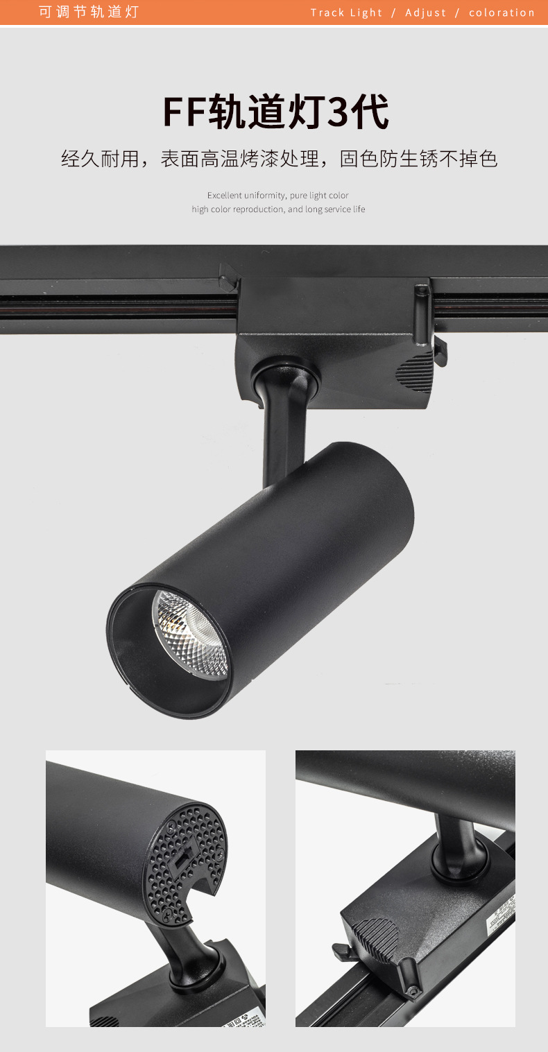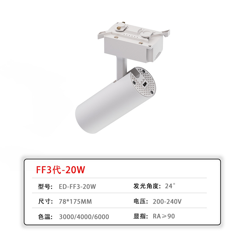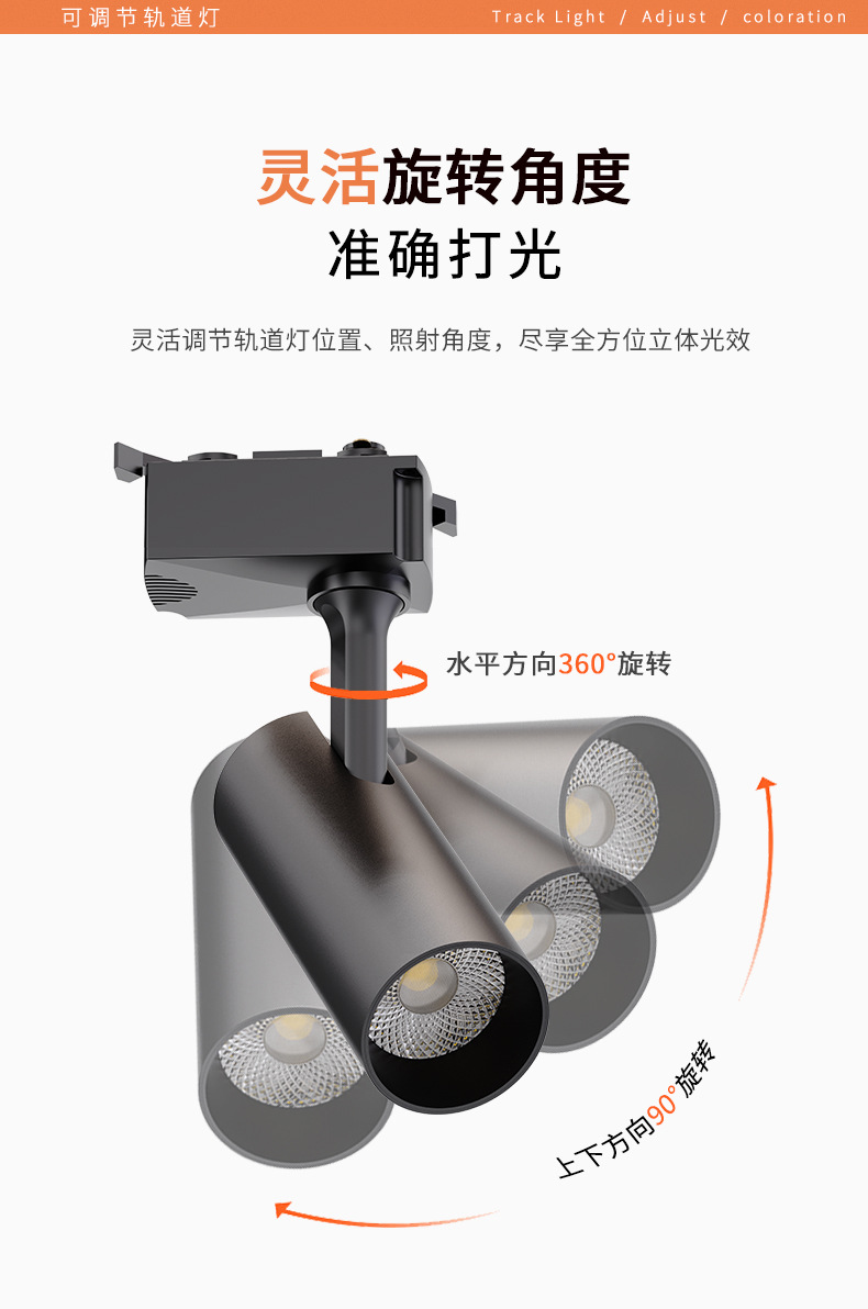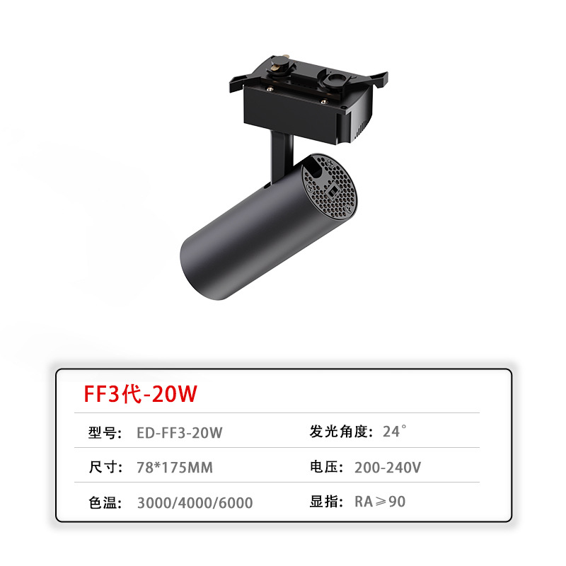 LED轨道灯商业照明批发服装店展厅聚光直筒射灯二线商用cob导轨灯