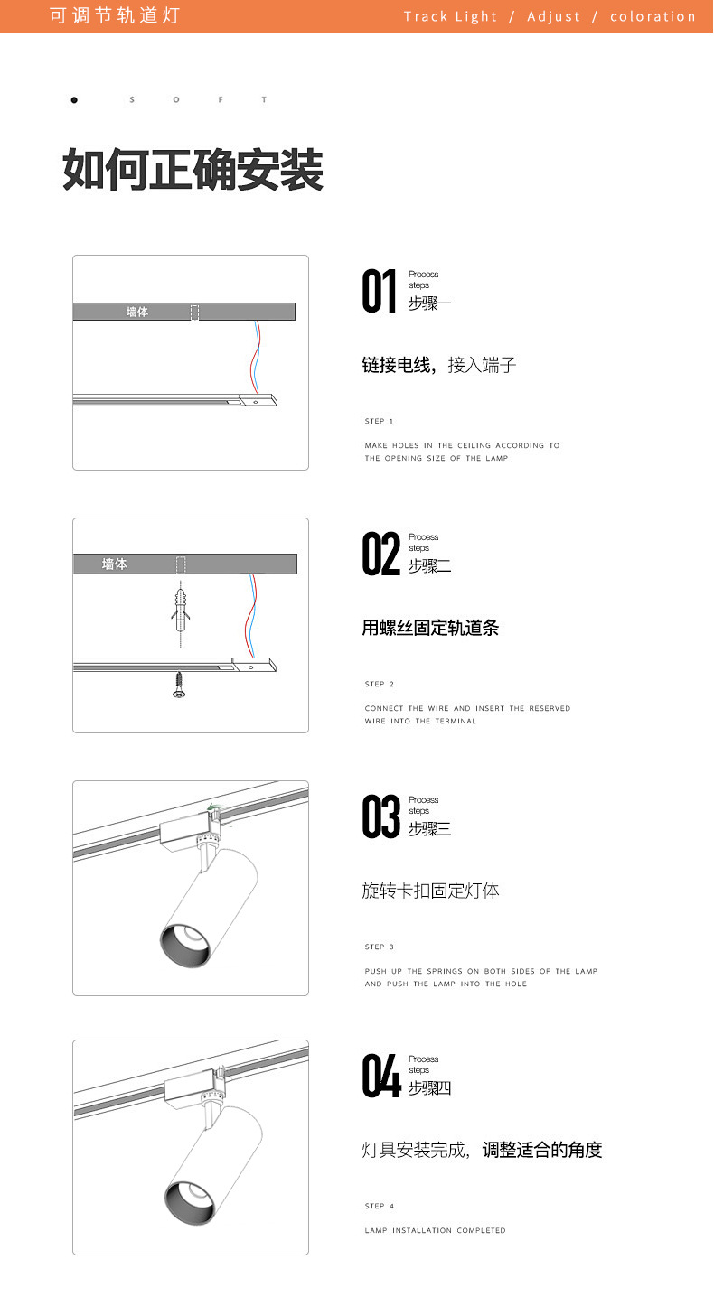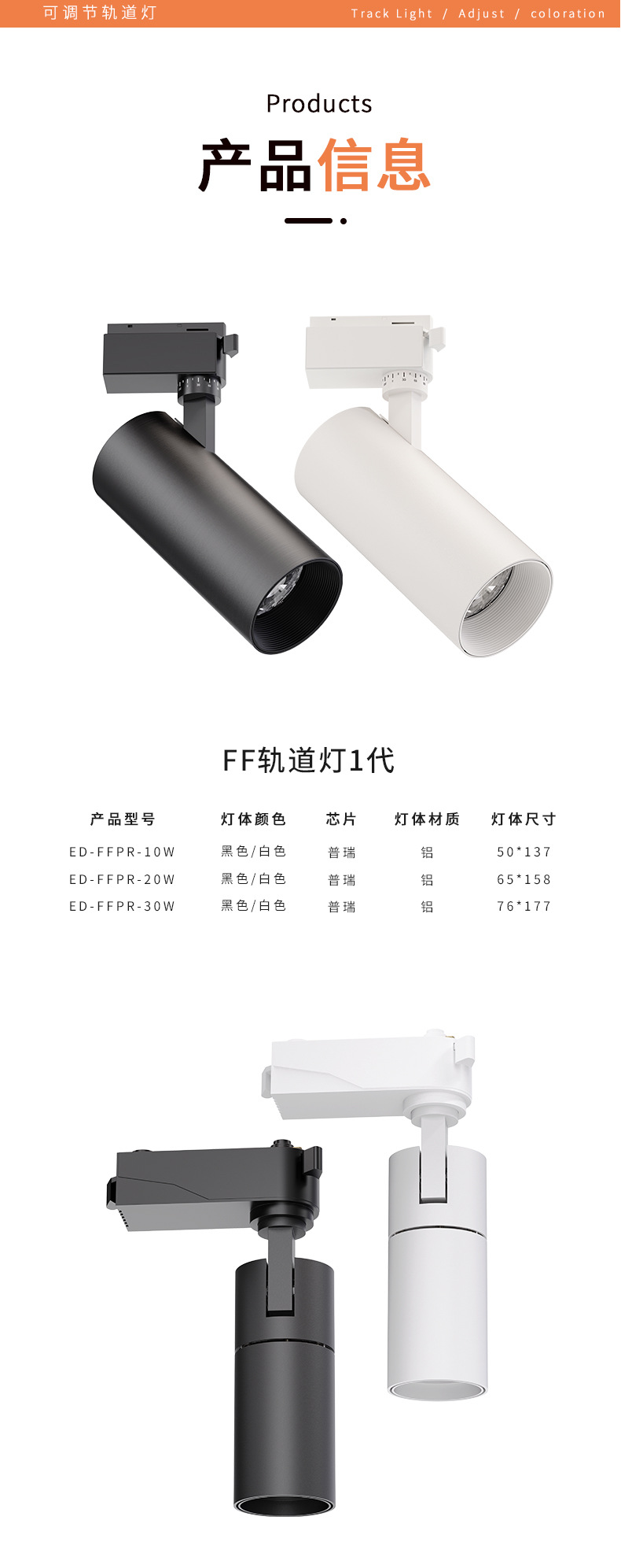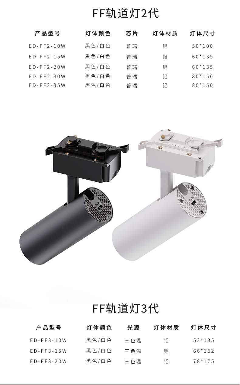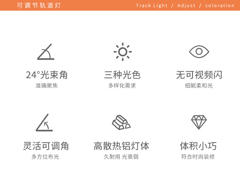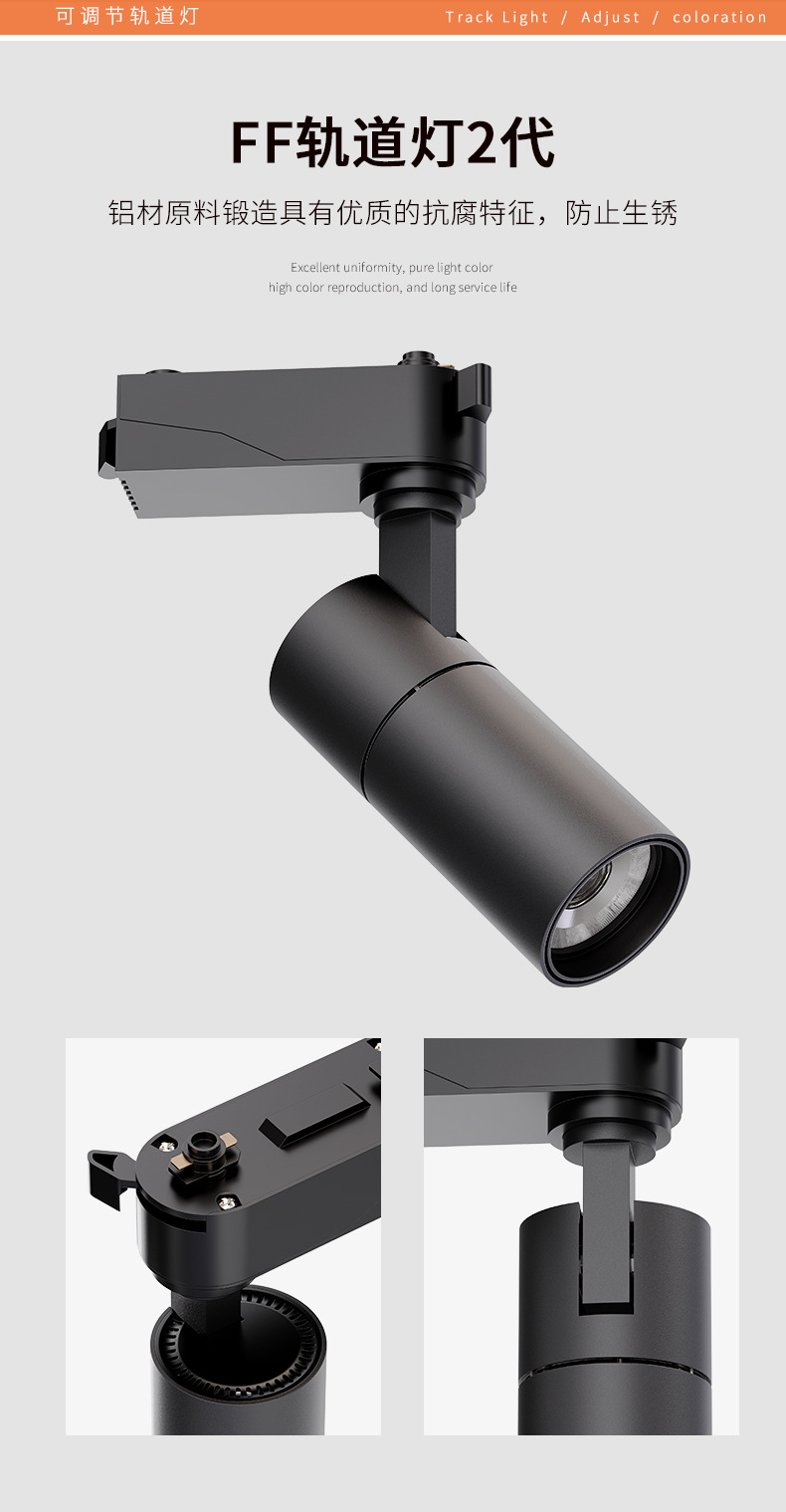 LED轨道灯商业照明批发服装店展厅聚光直筒射灯二线商用cob导轨灯