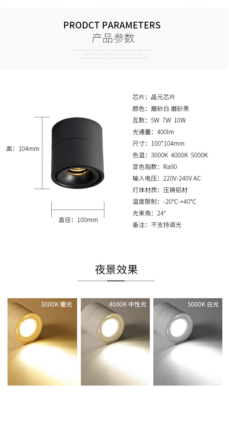 三棵松LED明装射灯免开孔服装店背景墙展厅照画廊COB可折轨道灯