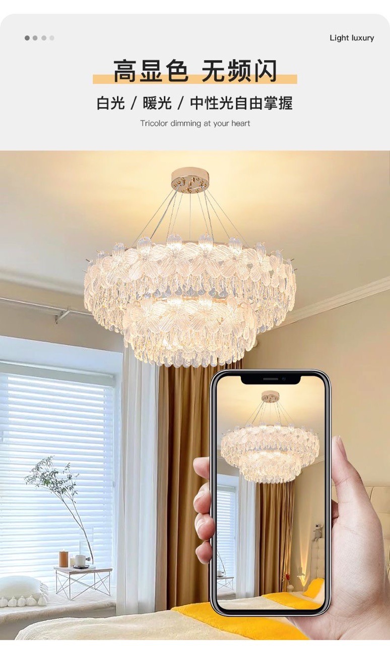 法式奶油风客厅吊灯主灯现代简约温馨浪漫卧室吊灯高级感中山灯具