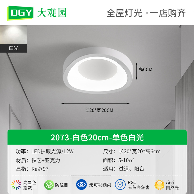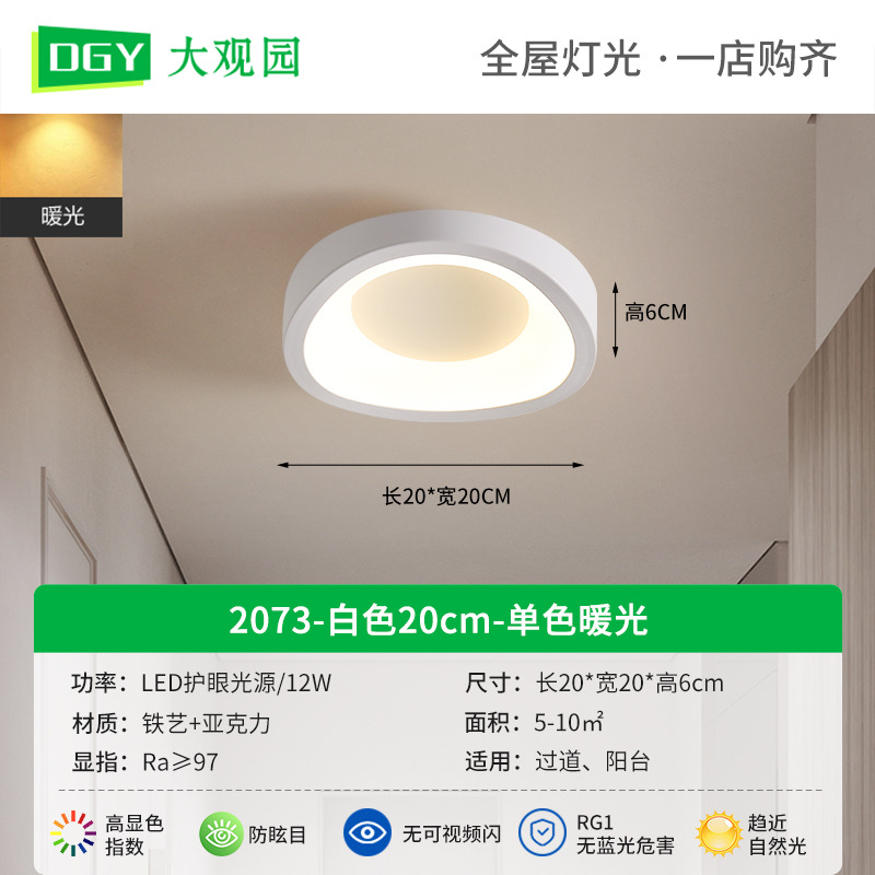 过道灯走廊灯简约现代入户玄关天花灯吸顶灯北欧衣帽间阳台灯具