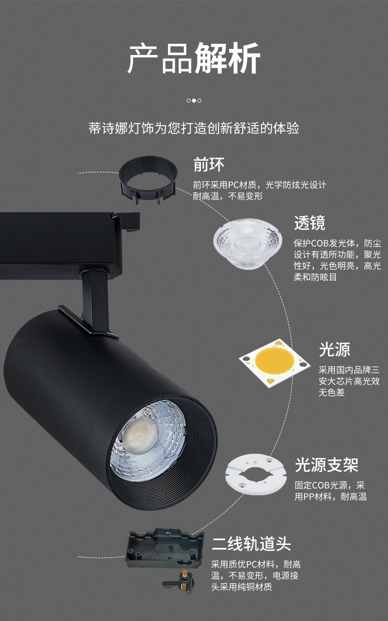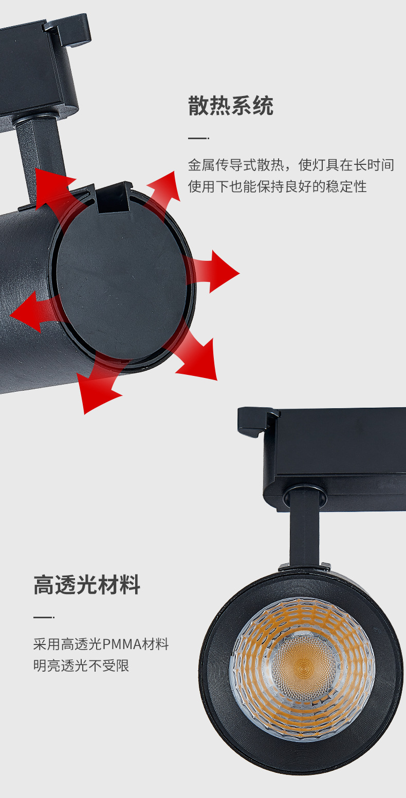 商业照明led导轨射灯明装射灯超市生鲜灯服装店cob轨道灯散光