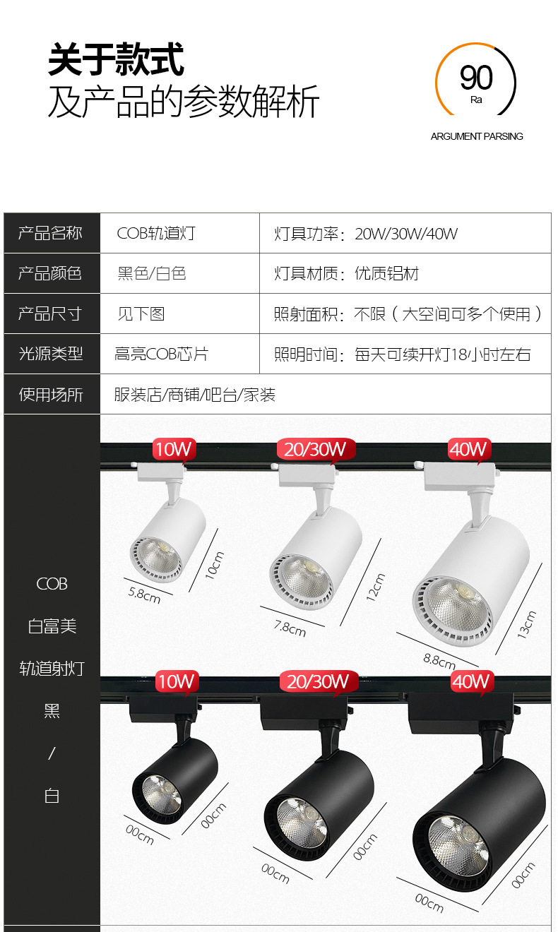 轨道灯led射灯商用店铺女装店超亮30W北欧暖光工业风背景墙导轨灯