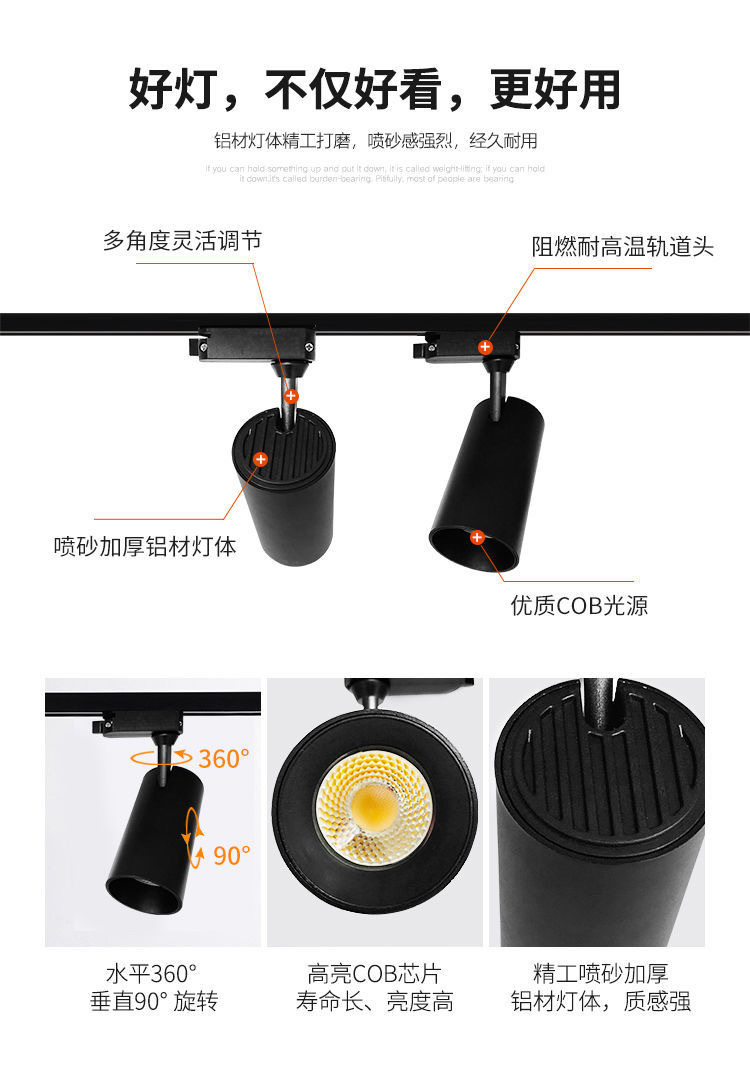 跨境宽压定制led轨道灯商业照明COB导轨灯服装店厂家批发工程款射