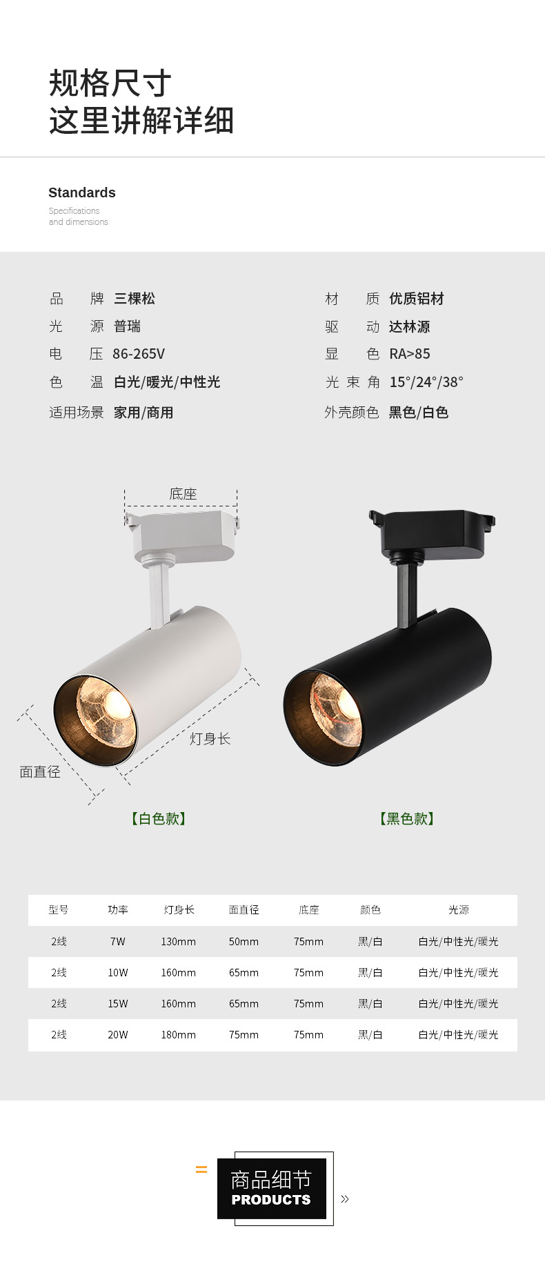 三棵松led轨道灯COB服装店15W射灯超市博物馆30W明装导轨灯