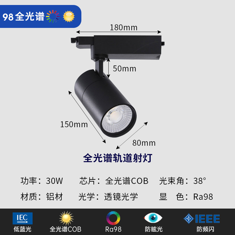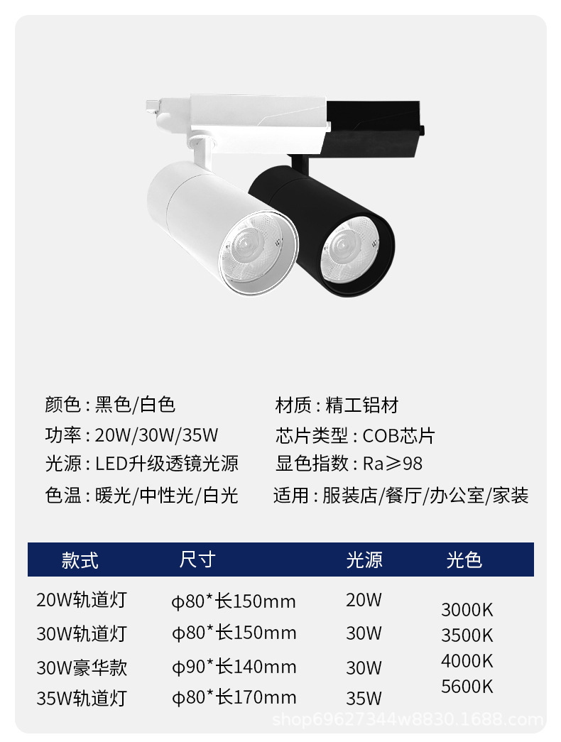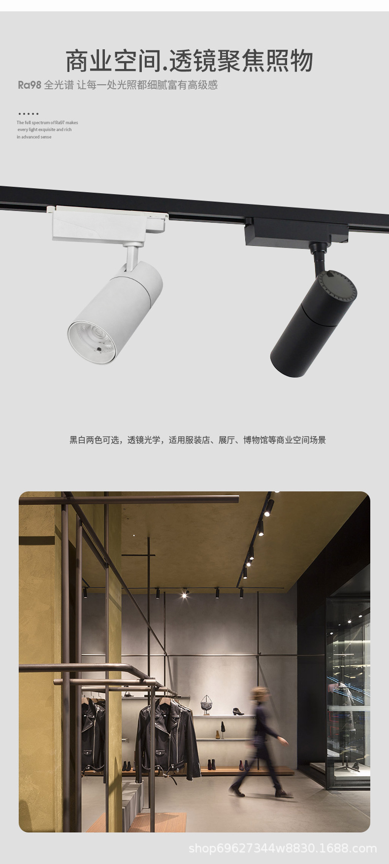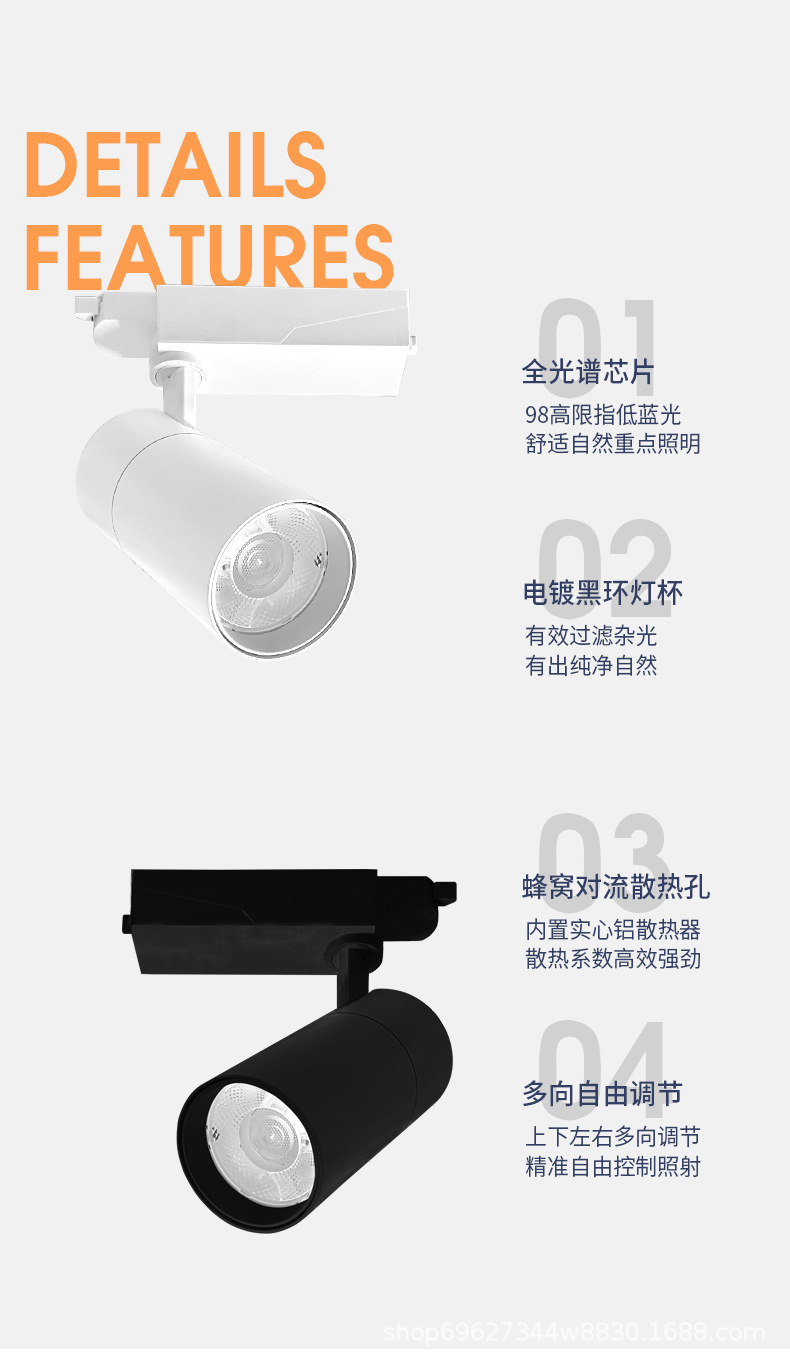 led轨道灯射灯家用天花灯服装店商用背景墙COB聚光超亮家导轨灯