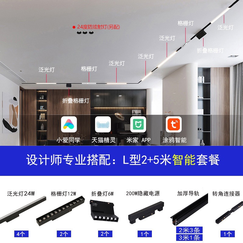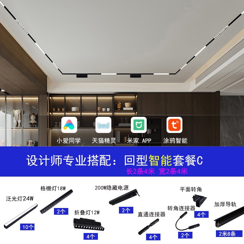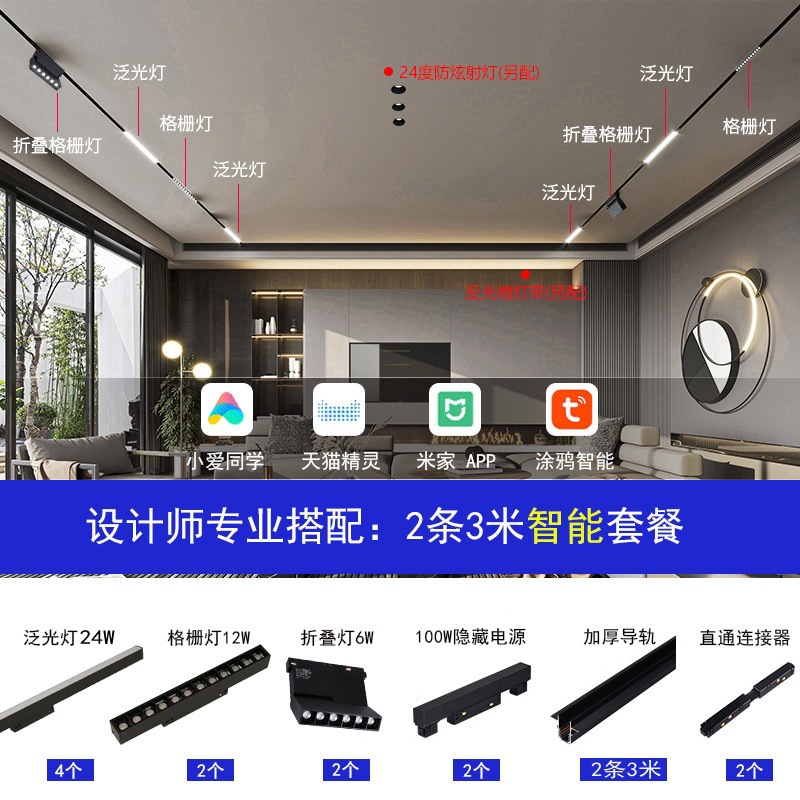 LED智能磁吸轨道灯无主灯照明全屋设计客厅餐厅卧室照明套餐组合