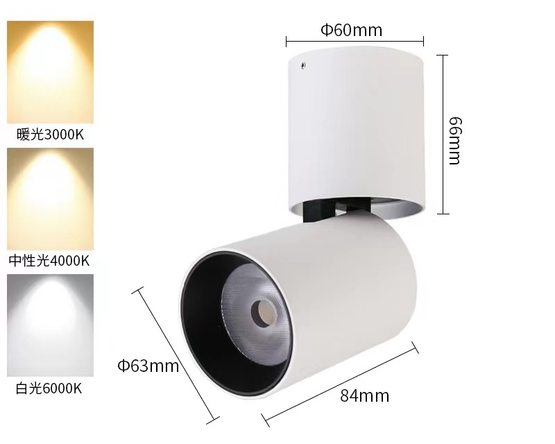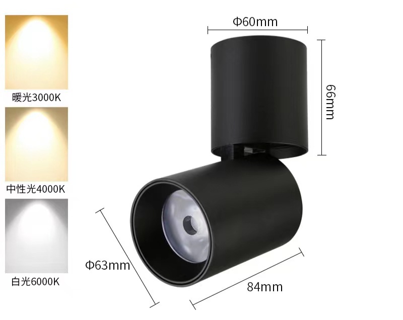 LED明装可调节射灯家居商业照明可折叠90°旋转355°明装天花射筒