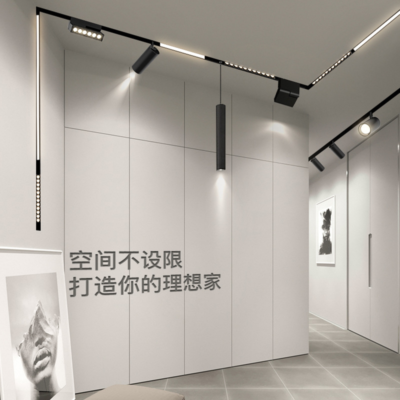 磁吸轨道灯led嵌入式无主灯商业照明酒店别墅明装线条灯轨道射灯