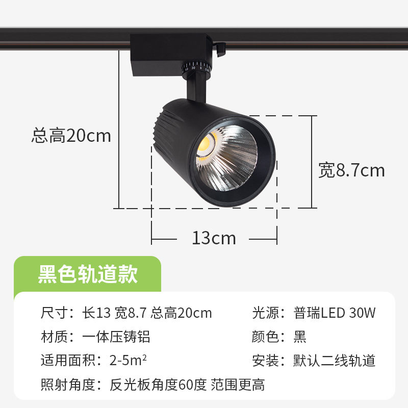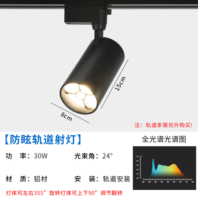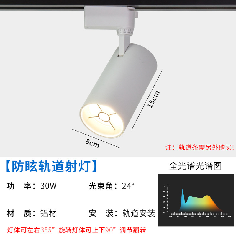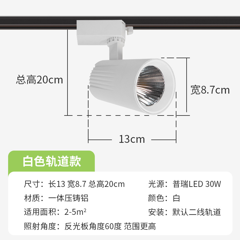 聚光高显4000k防眩轨道射灯 30w衣服店小山丘导轨式明装LED轨道灯