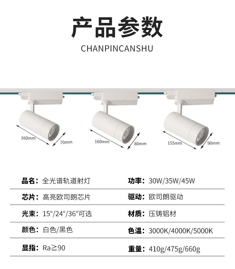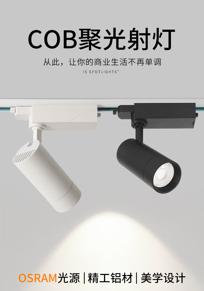 商用导轨灯服装店明装射灯欧司朗COB光源驱动商场展厅LED轨道灯