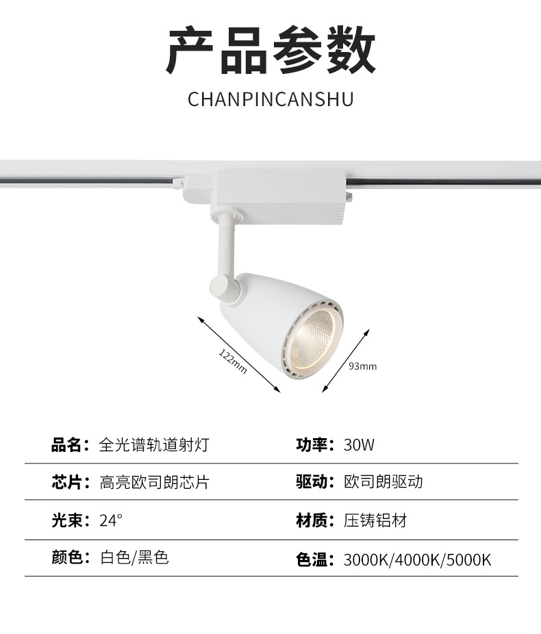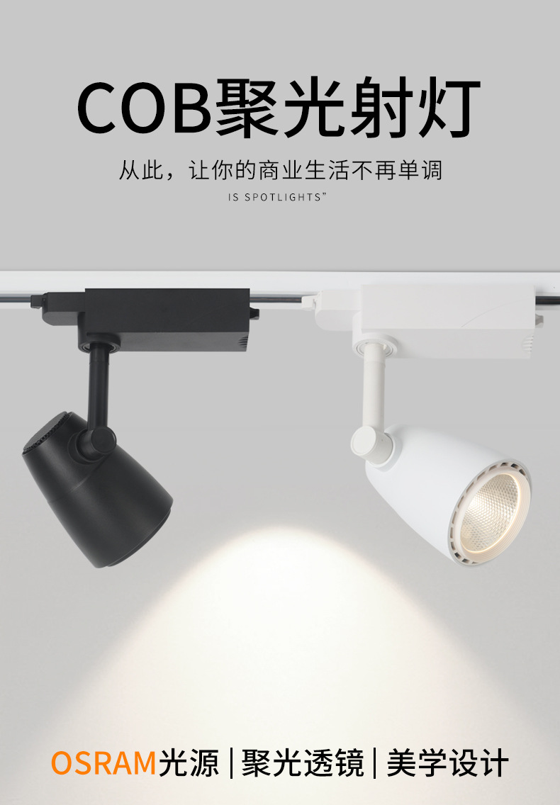 高亮COB商铺照明射灯欧司朗光源驱动无主导轨灯服装店展厅轨道灯
