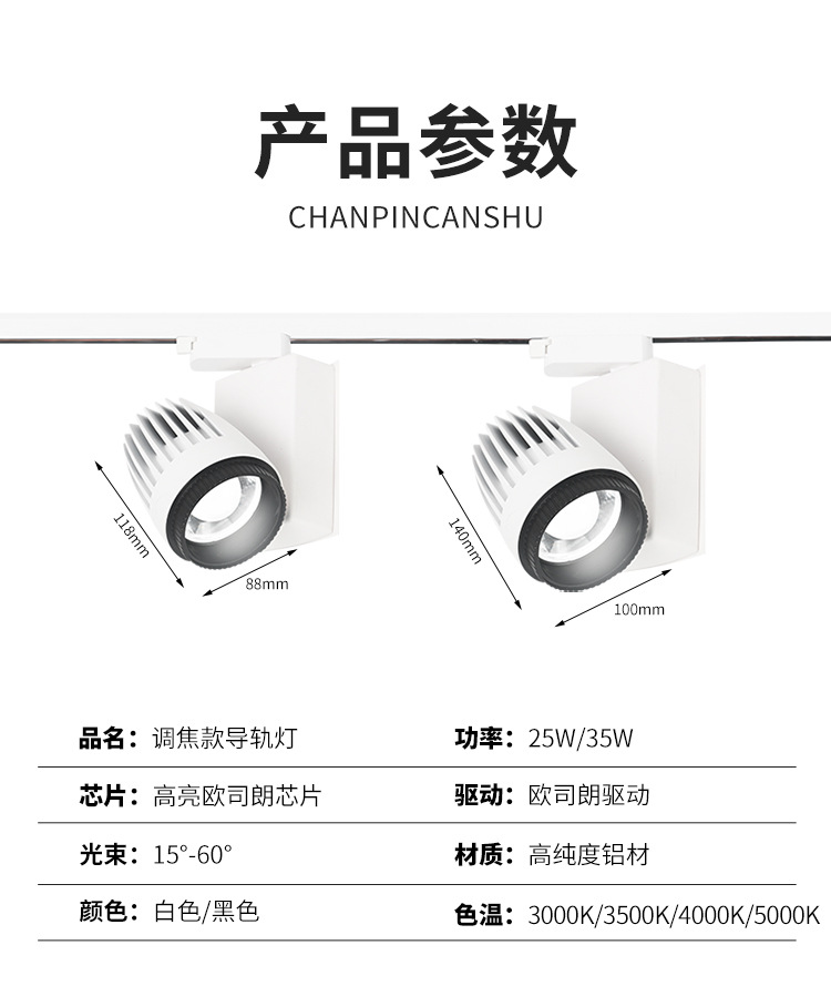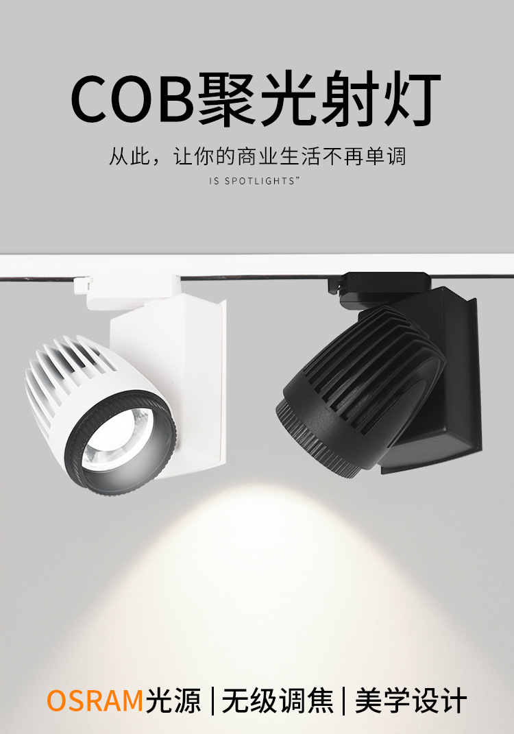 无极调焦高亮导轨灯服装店酒店画廊射灯欧司朗驱动光源明装轨道灯