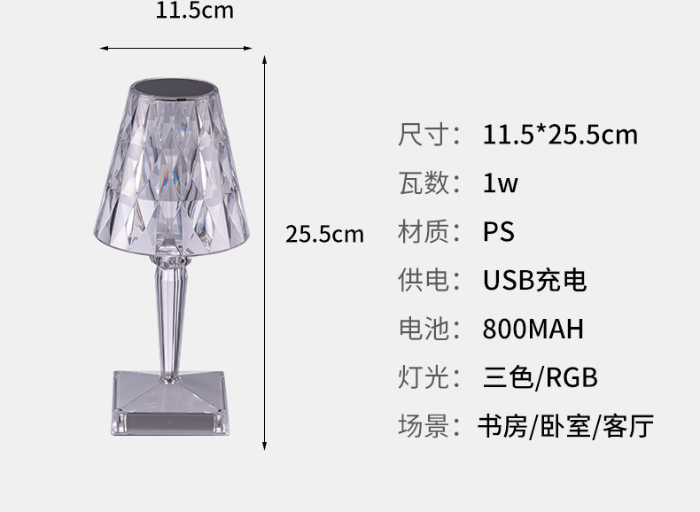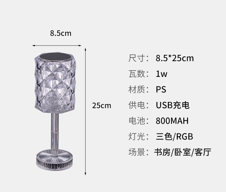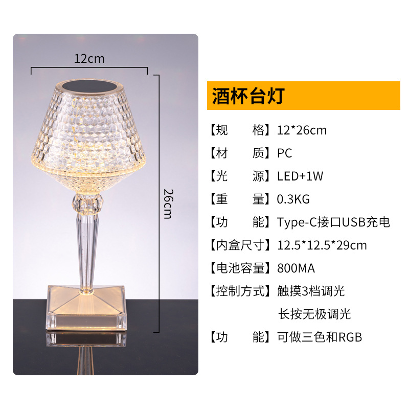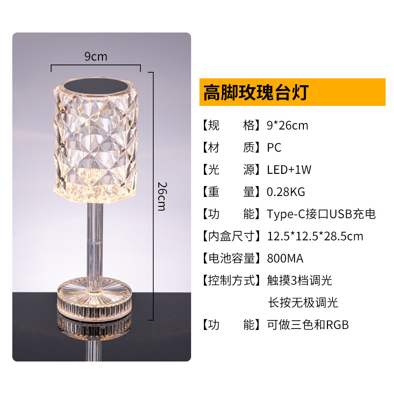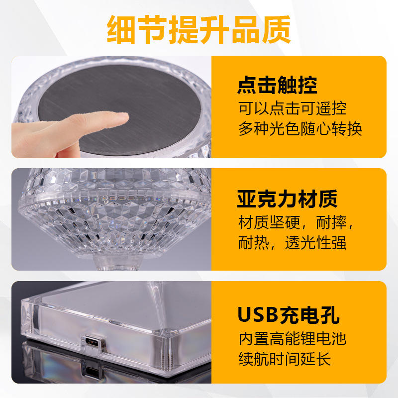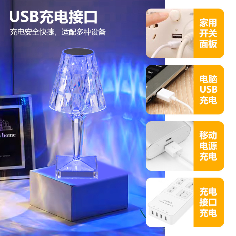 跨境水晶台灯ins风轻奢卧室床头氛围灯户外触摸台灯酒吧led小夜灯