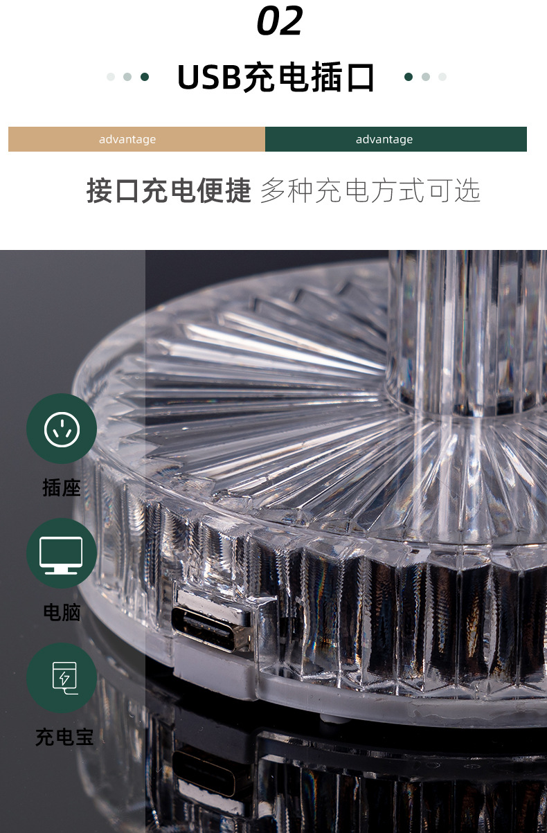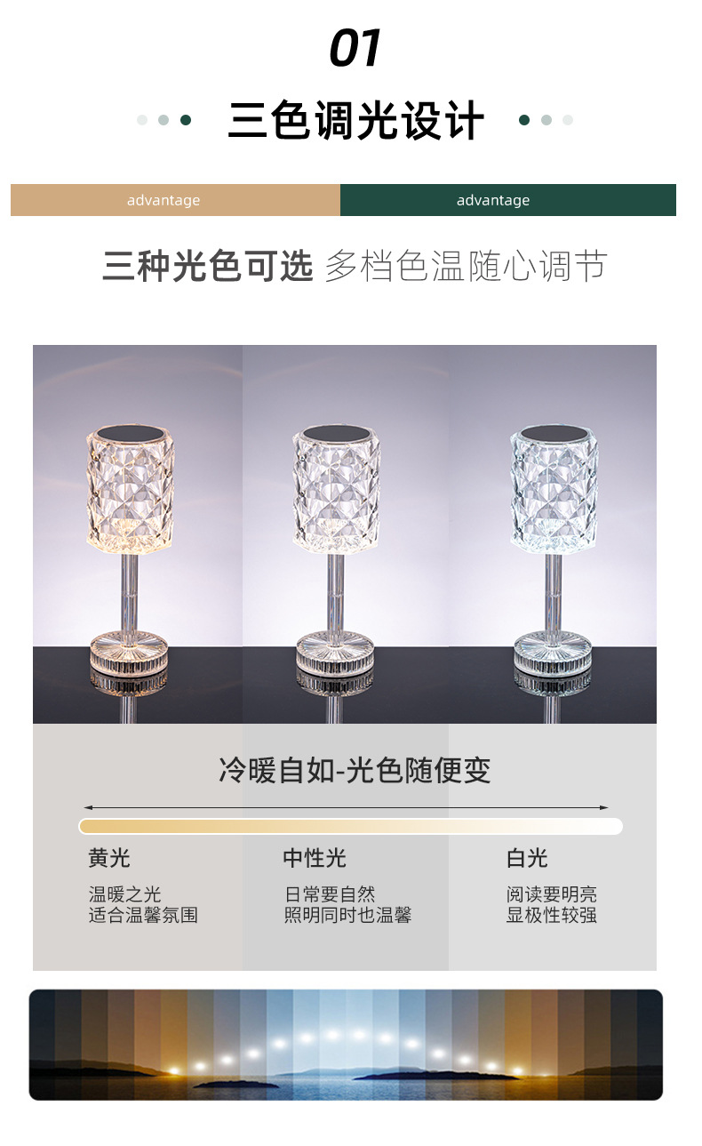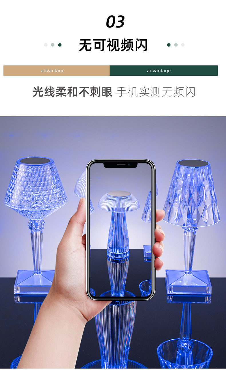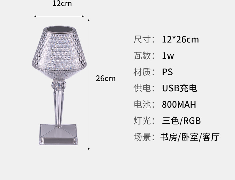 跨境水晶台灯ins风轻奢卧室床头氛围灯户外触摸台灯酒吧led小夜灯