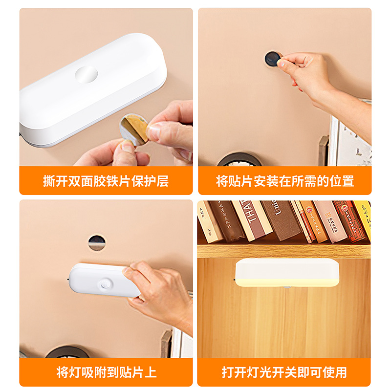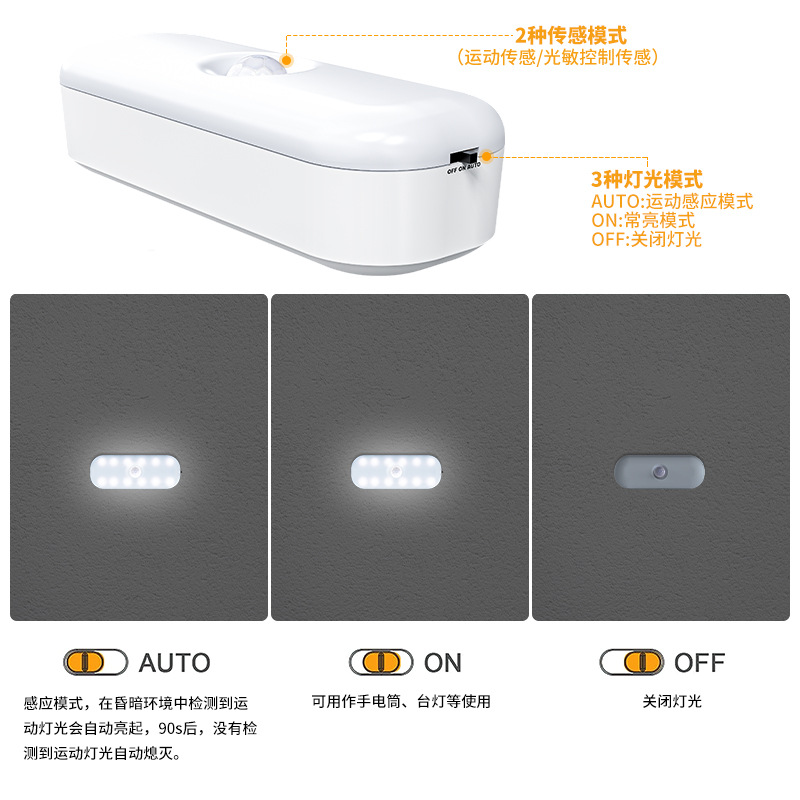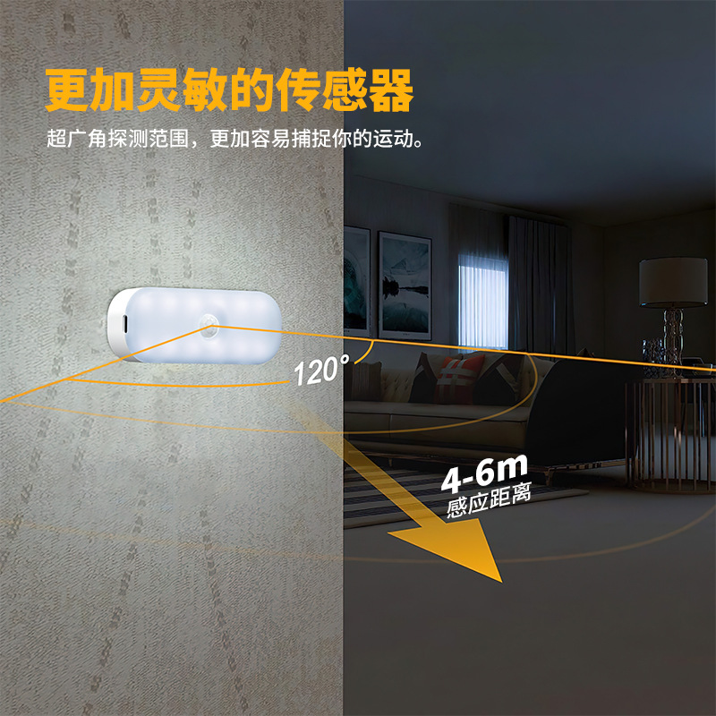 跨境新款人体感应灯厂家现货充电厨房橱柜床头智能感应小夜灯