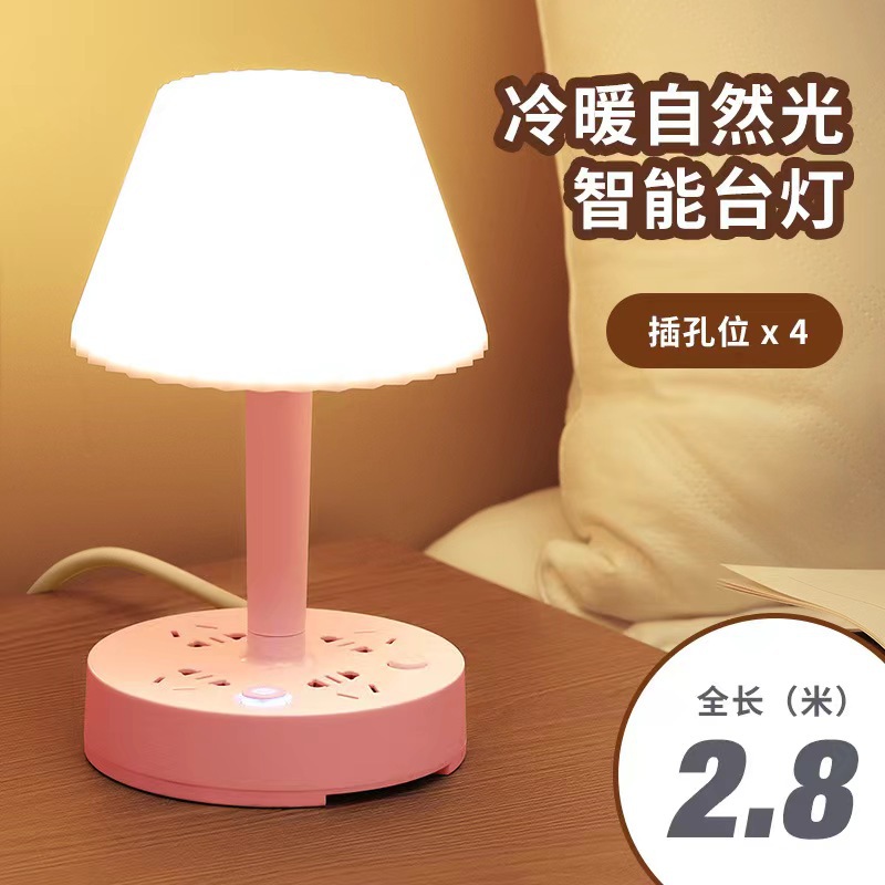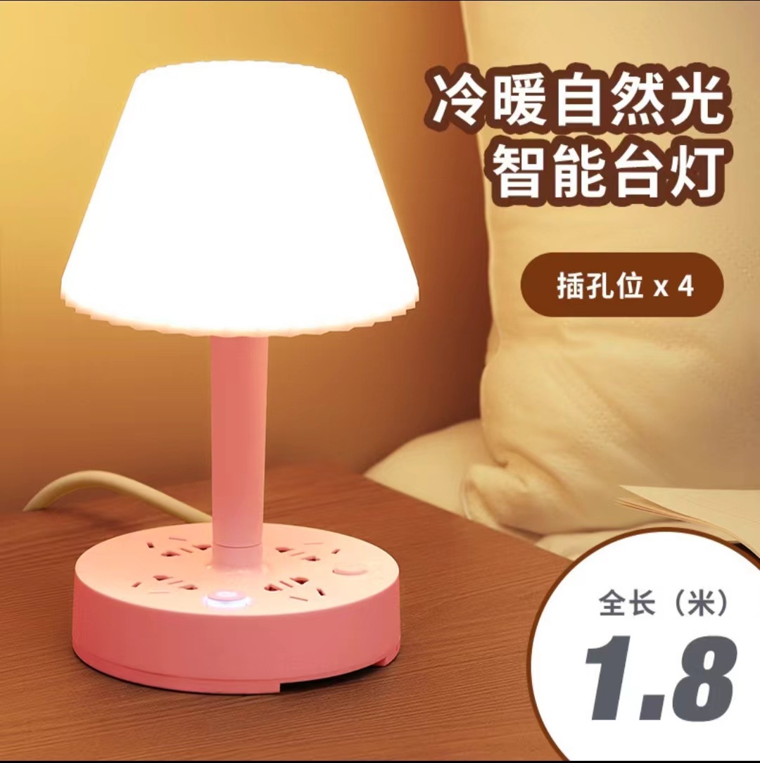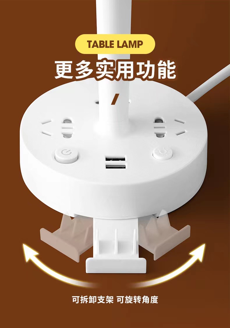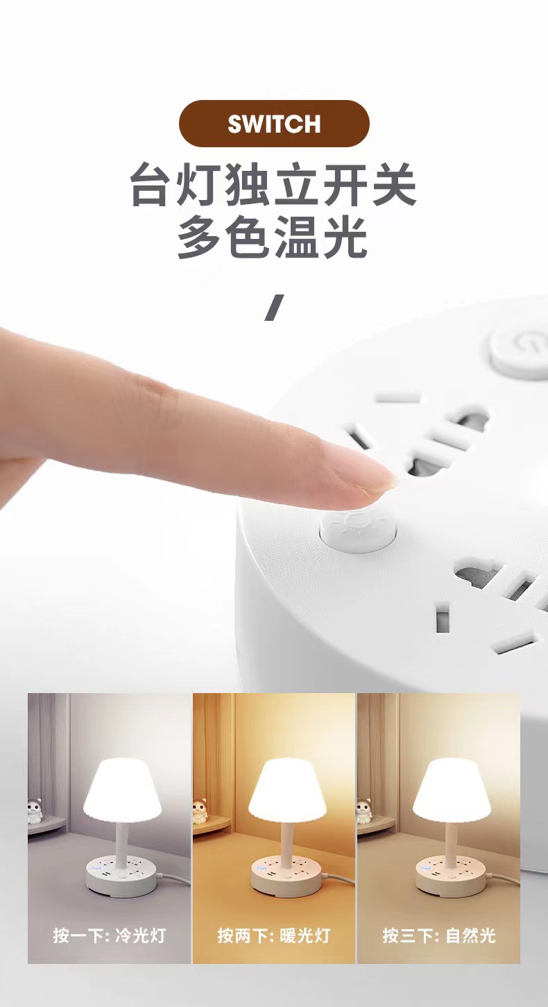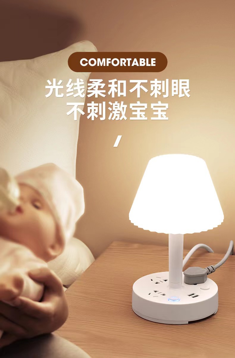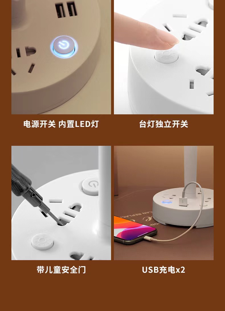 装饰多功能LED插座台灯 卧室电脑书桌床头多孔位排插柔光护眼夜灯