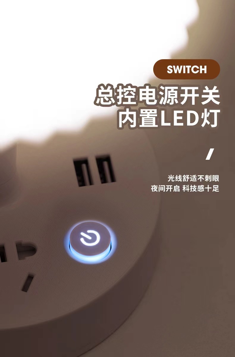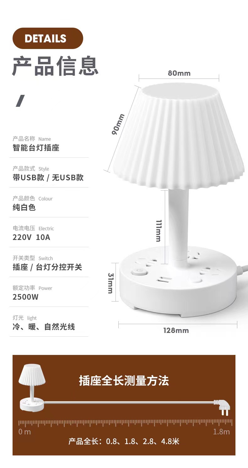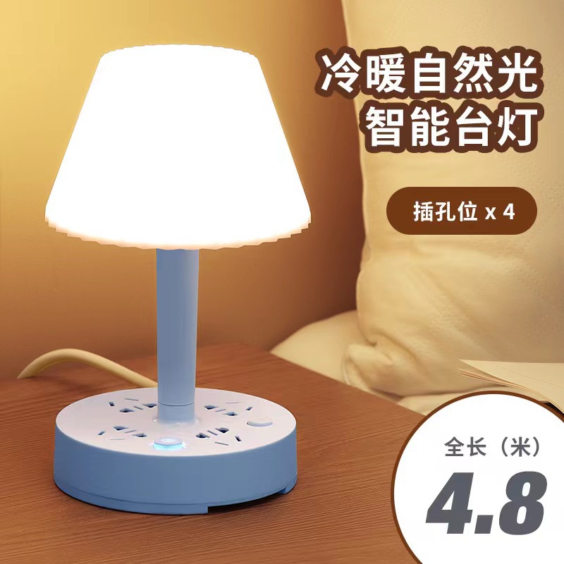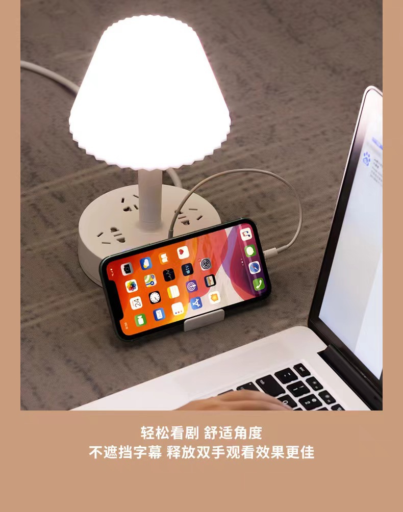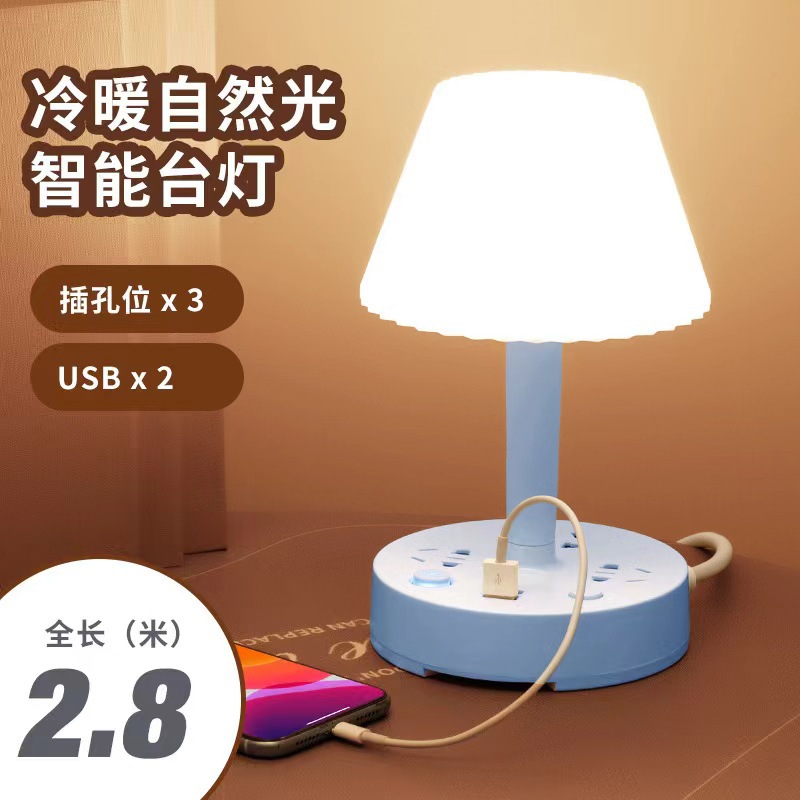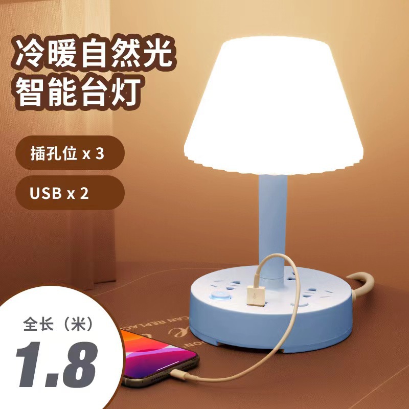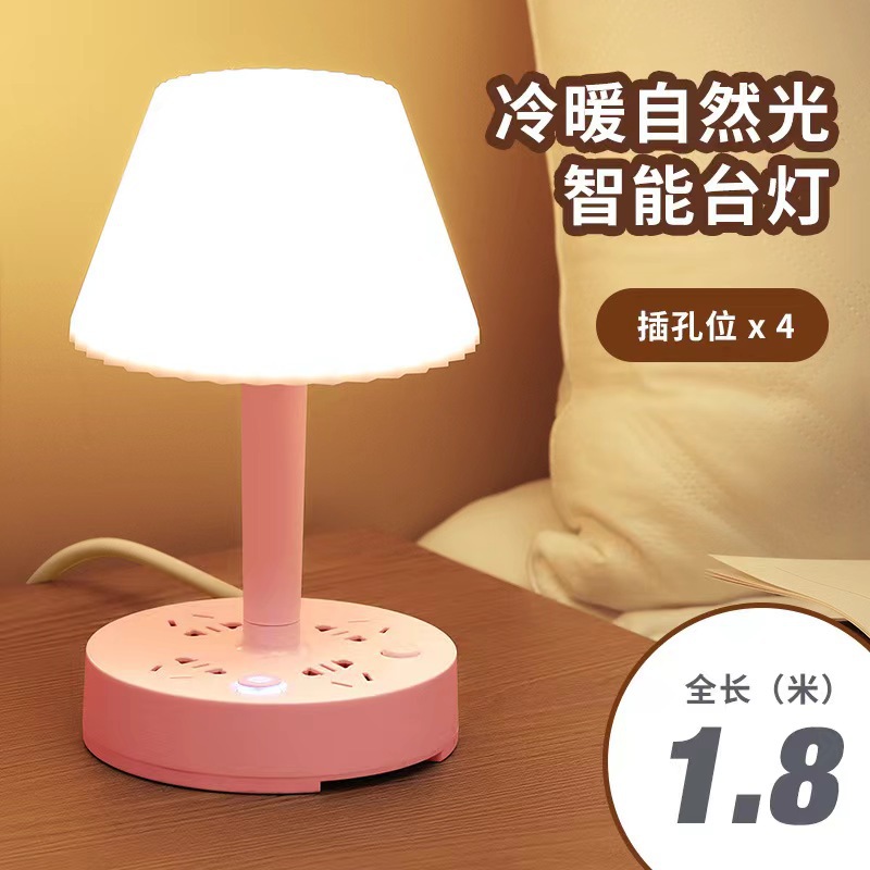装饰多功能LED插座台灯 卧室电脑书桌床头多孔位排插柔光护眼夜灯