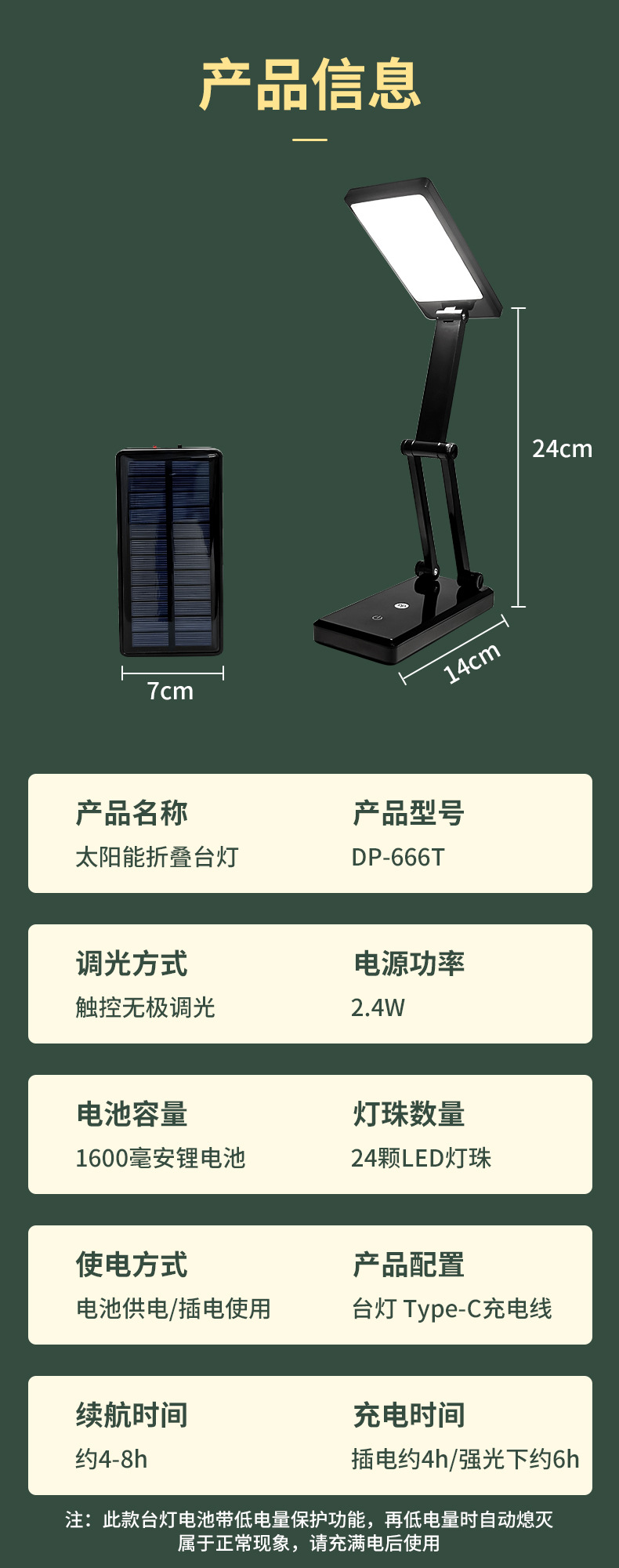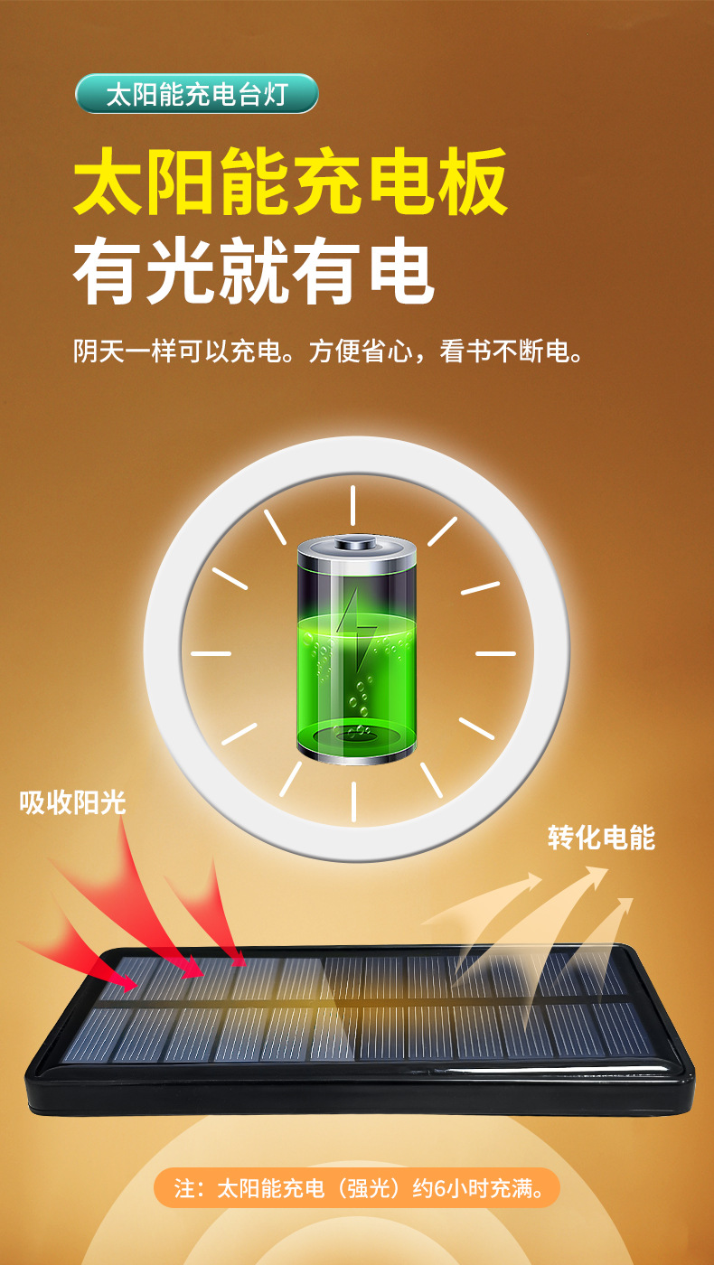 久量太阳能充电台灯666T学生学习专用阅读护眼灯折叠简约led台灯