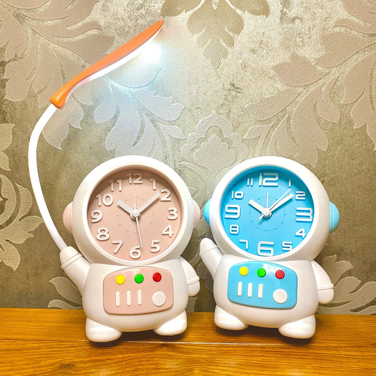 新款宇航员闹钟台灯一体卡通时钟摆件学生起床神器学习床头LED灯