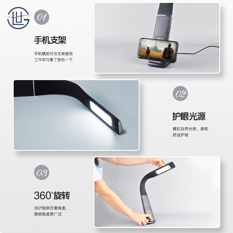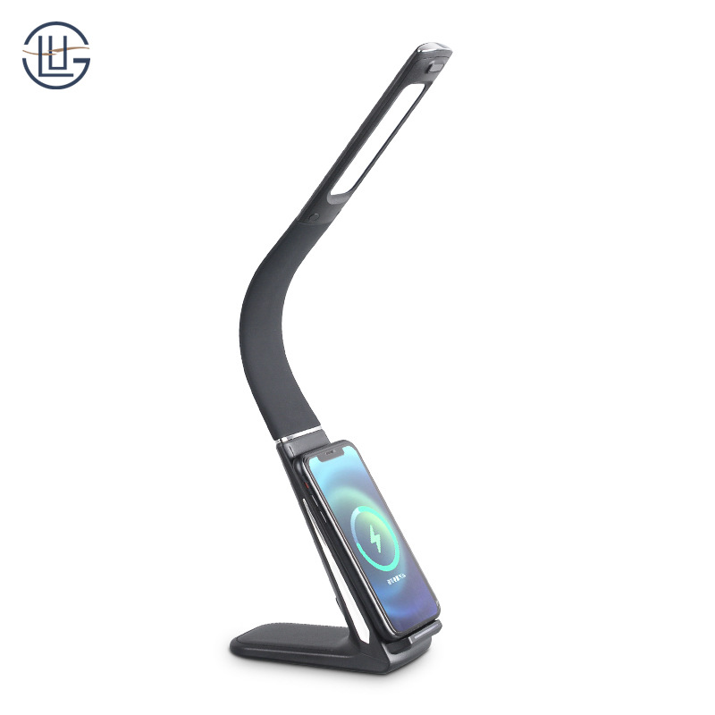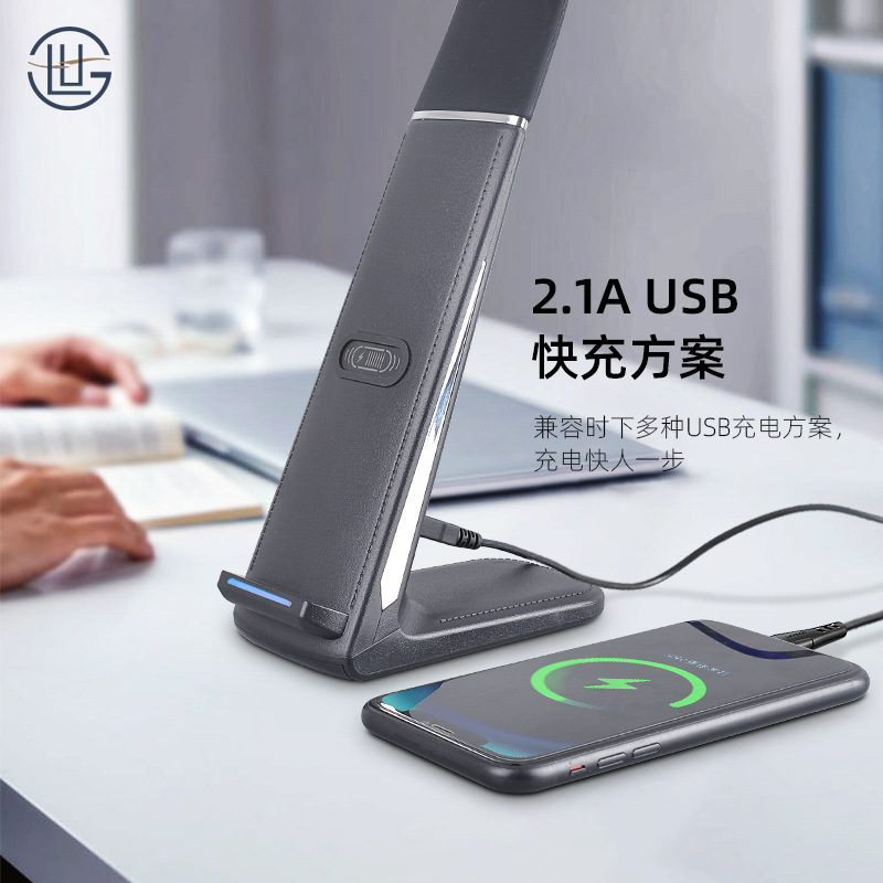 2024跨境新品台灯10w无线充电usb充皮纹感应办公阅读led护眼台灯