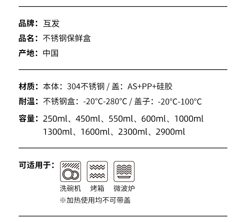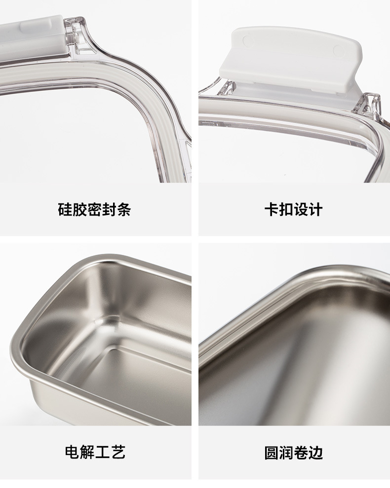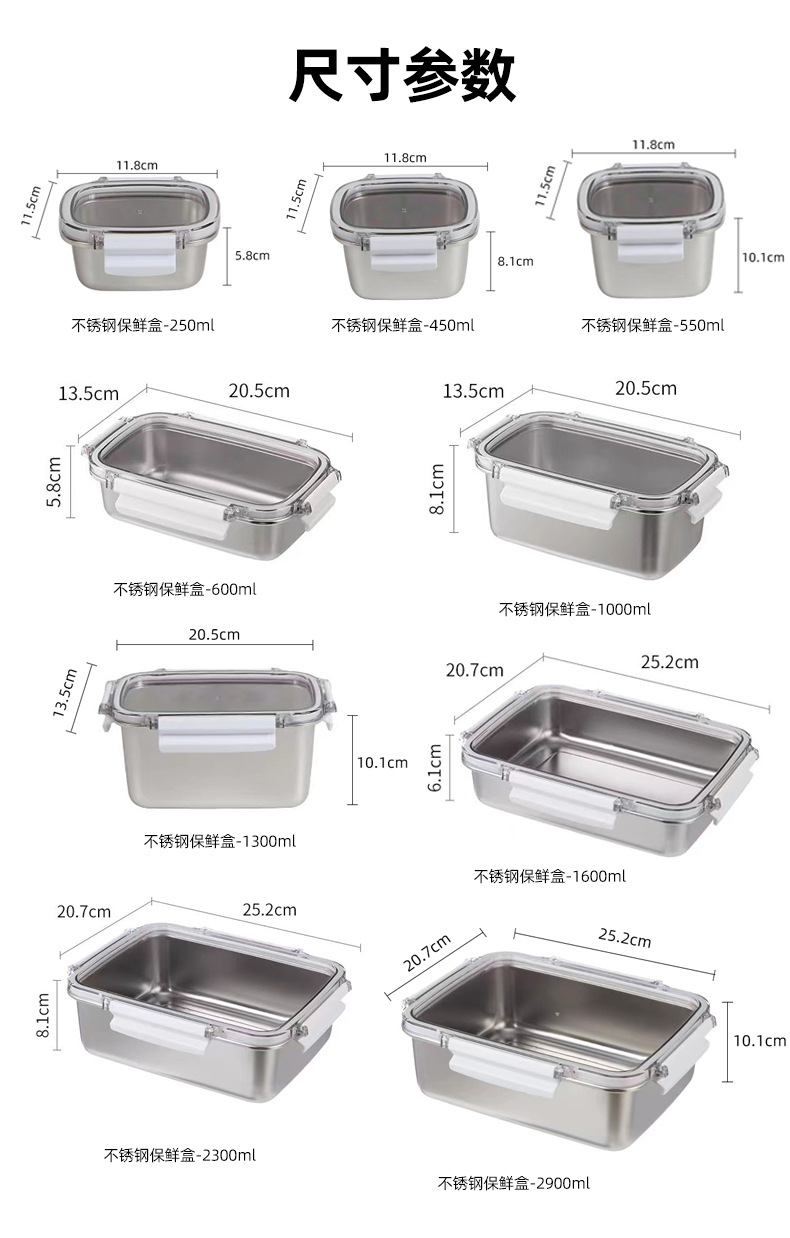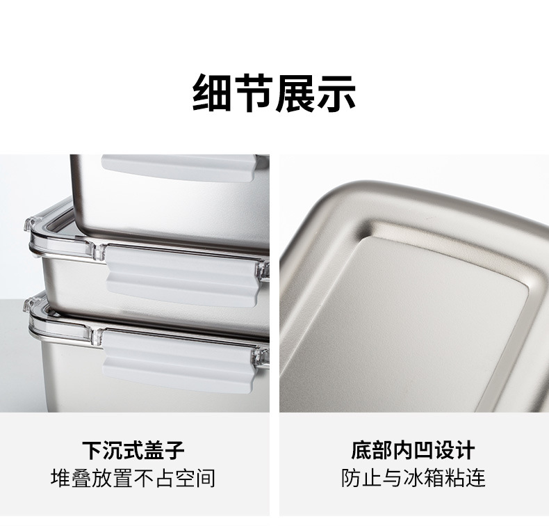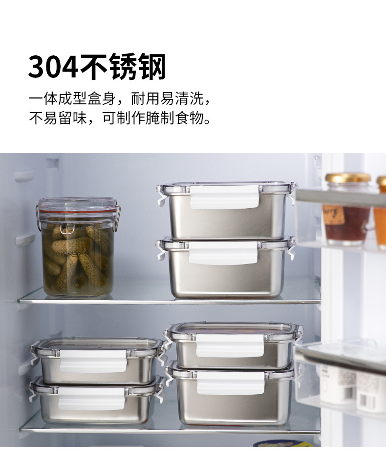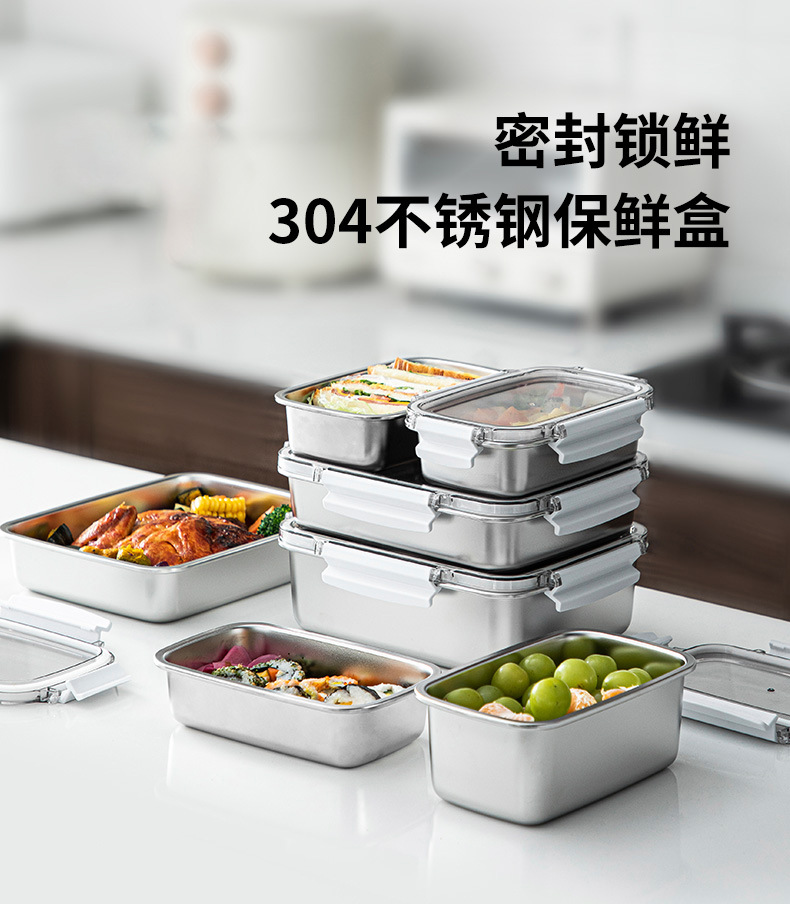 304不锈钢乐扣保鲜盒密封带盖便当盒家用冰箱冷冻冷藏食品收纳盒