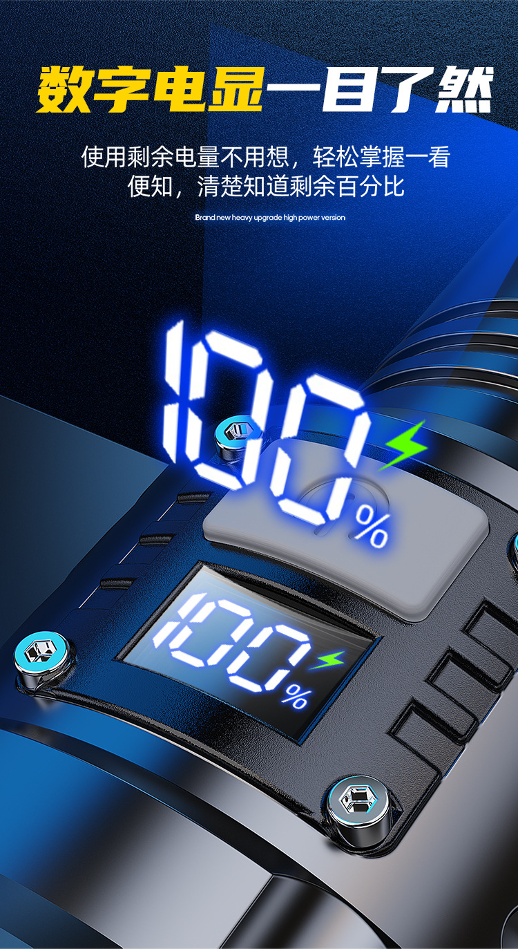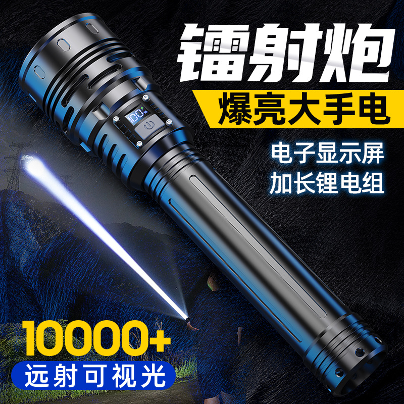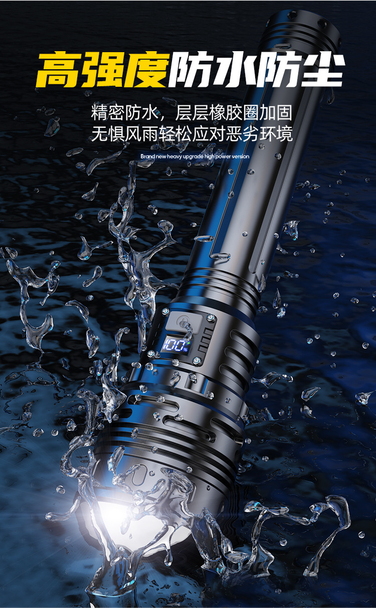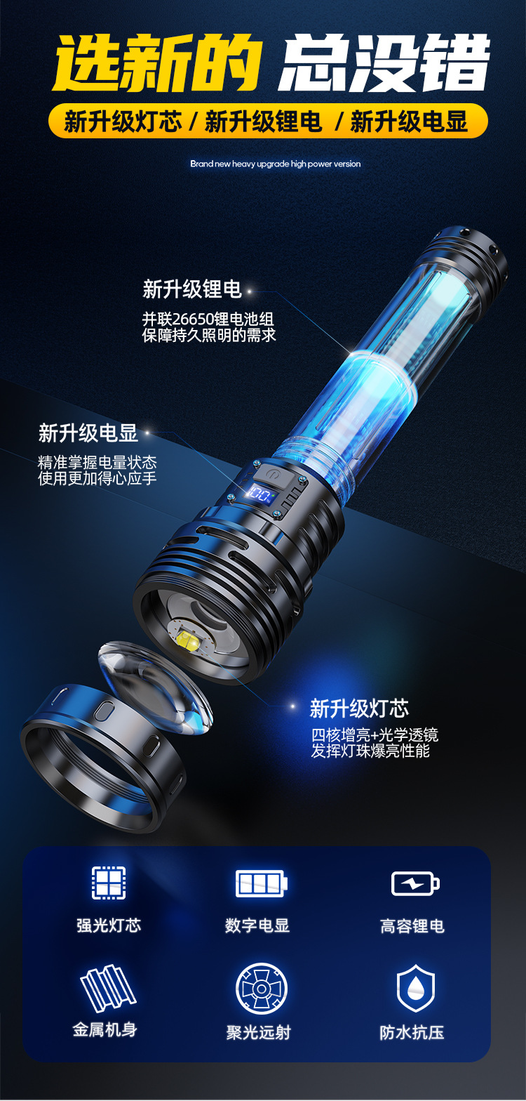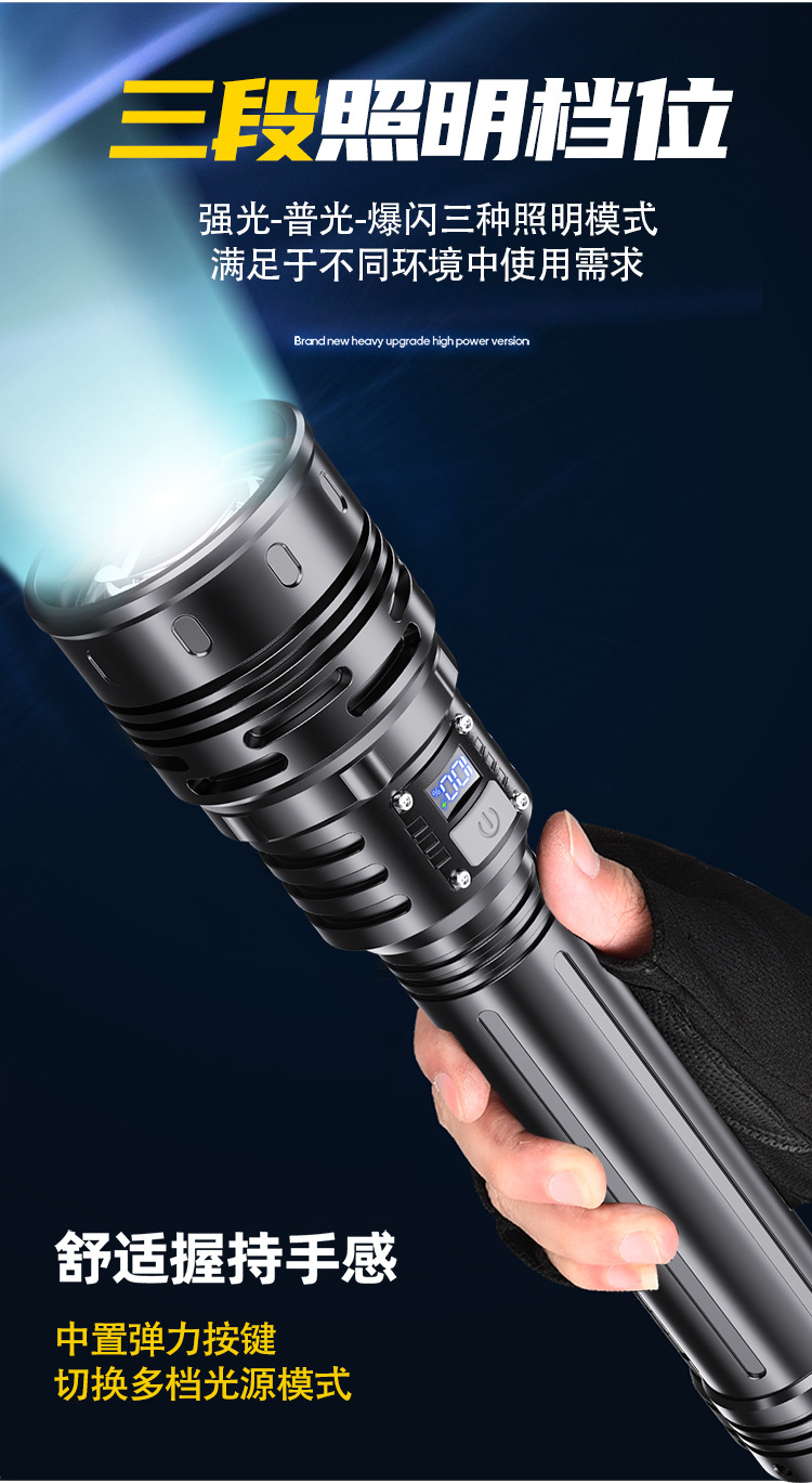 新款 Type-C快充数显P90手电筒 户外防水充电超亮战术变焦手电筒
